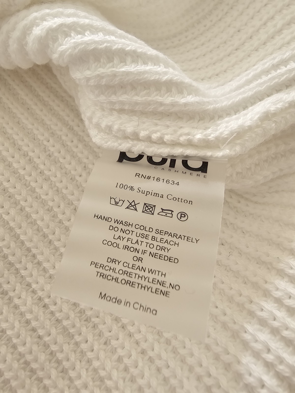 как выглядит Pura Cashmere White Supima Cotton Knit Pullover Sweater Crew Neck M фото