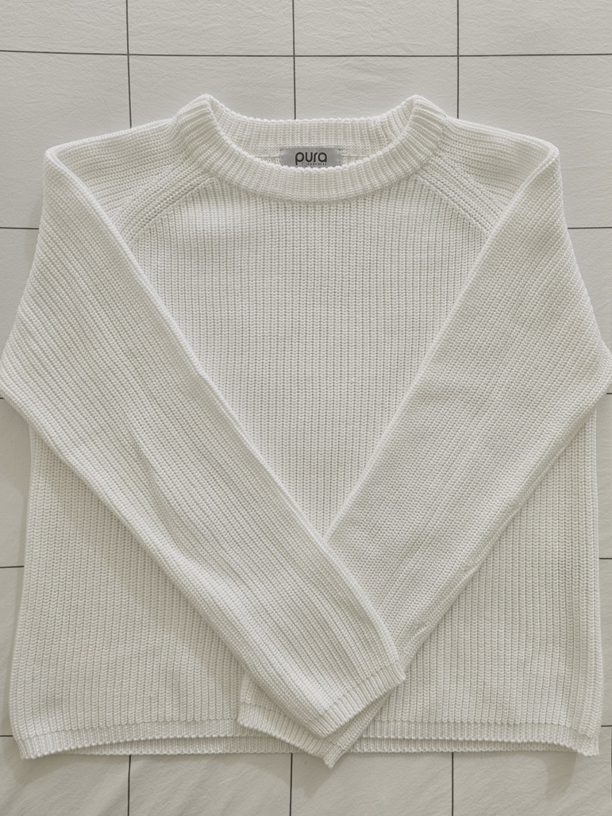 Pura Cashmere White Supima Cotton Knit Pullover Sweater Crew Neck M