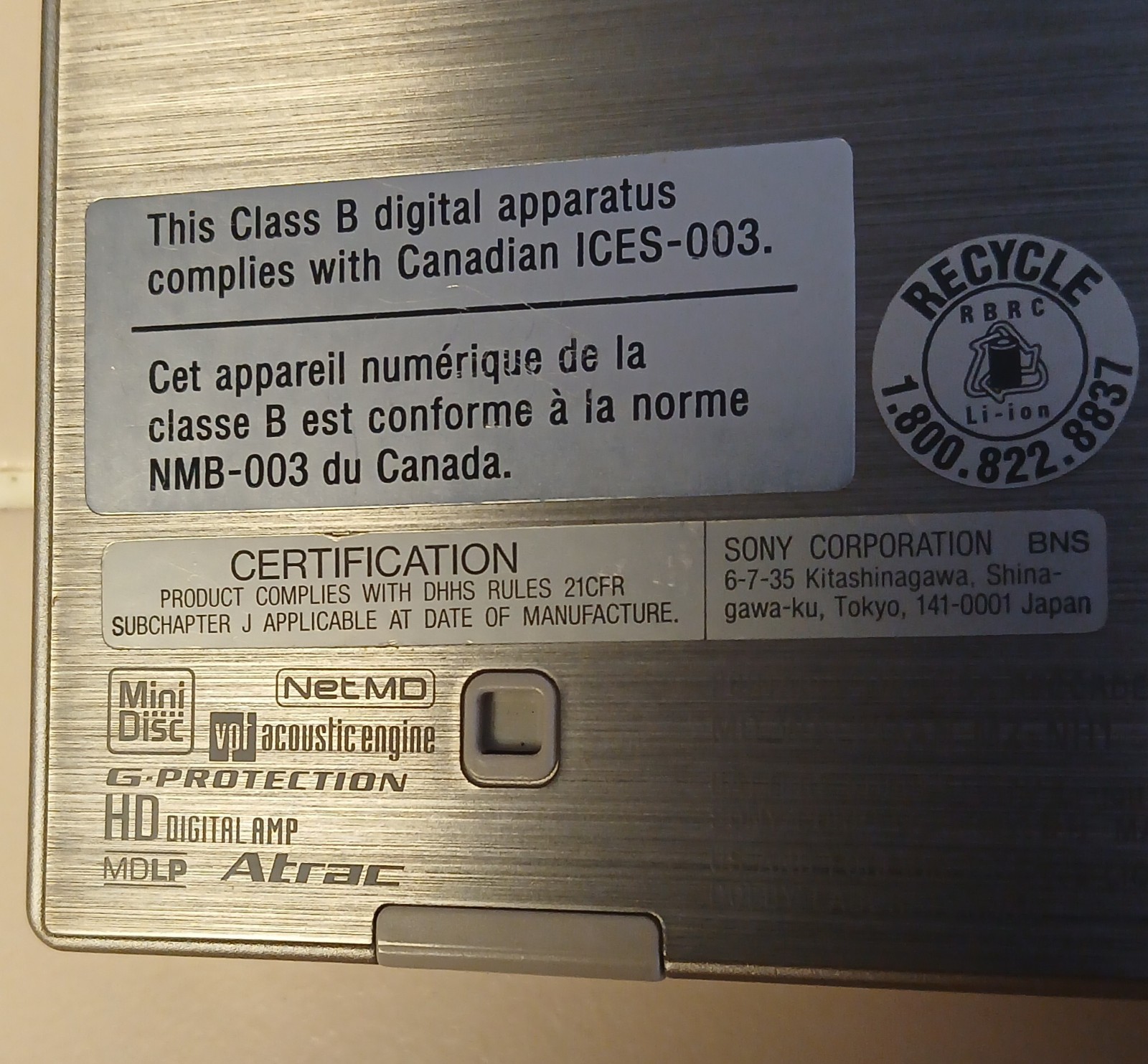 Тип: MiniDisc Player (Walkman)