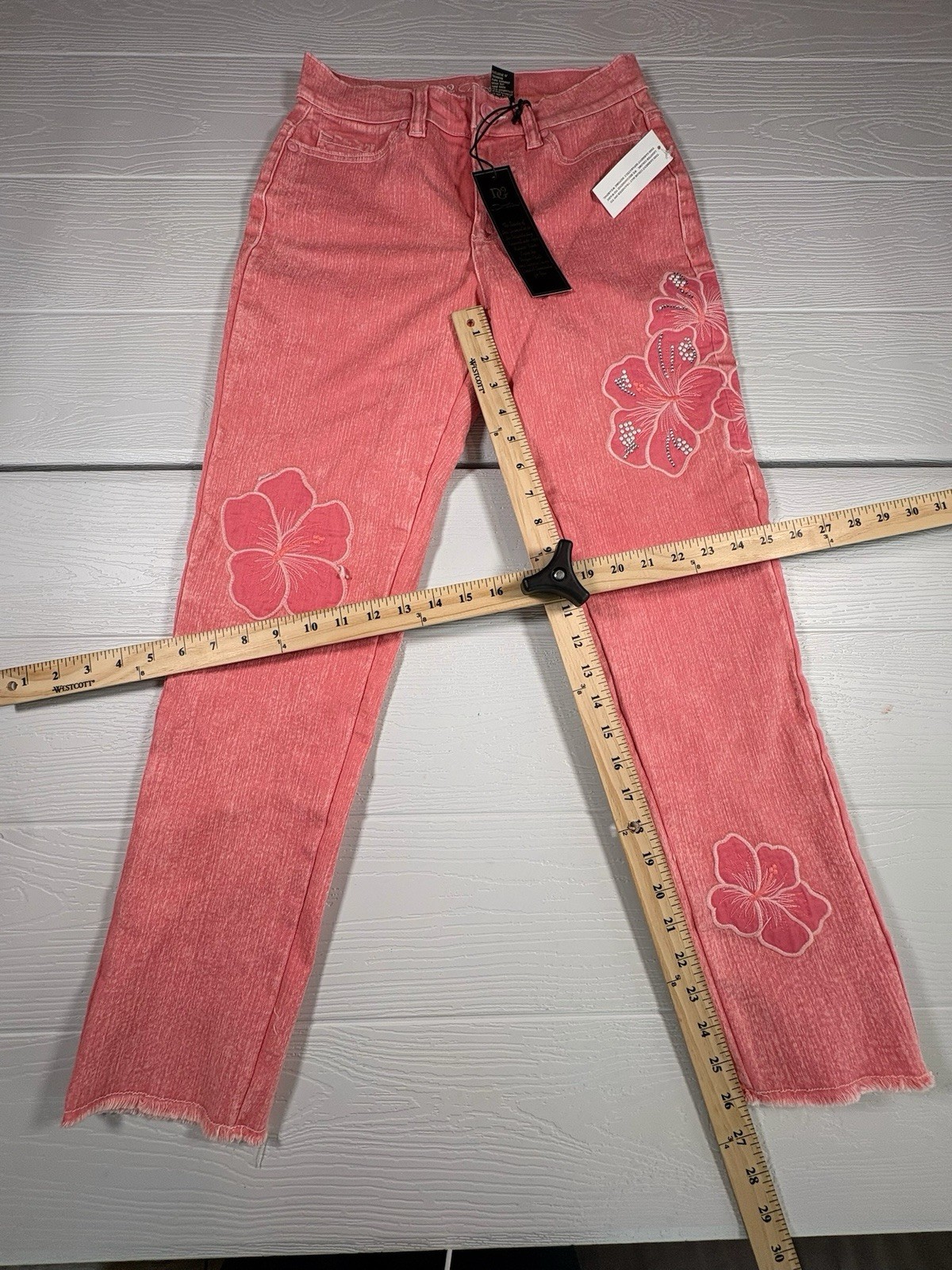 как выглядит DG2 Diane Gilman Sorbet Floral Appliqu Ankle Jean PINK 2 NEW A13 фото