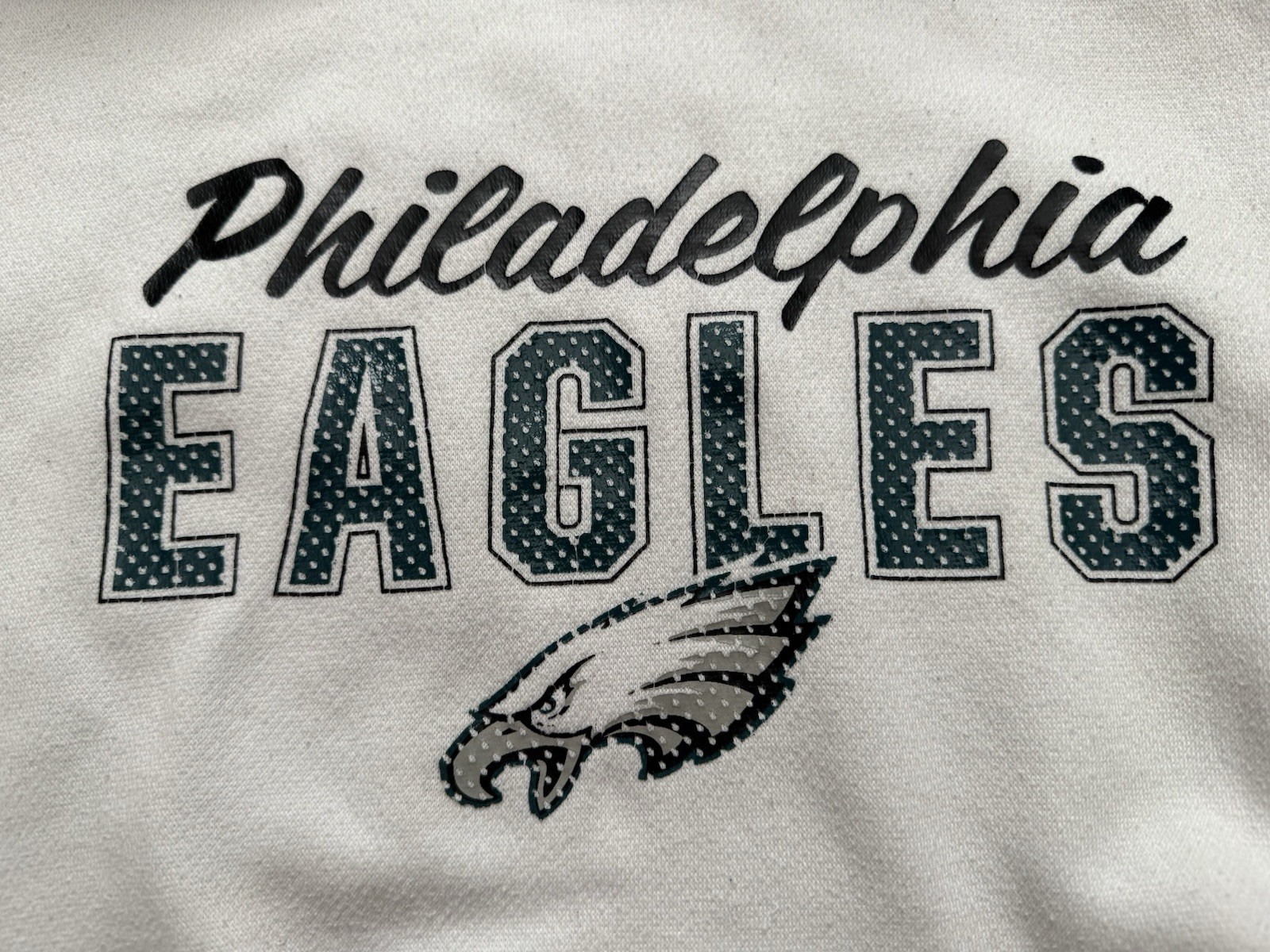 • Vintage Philadelphia Eagles White/Green Raglan Hoodie With Pockets 2XL Majestic