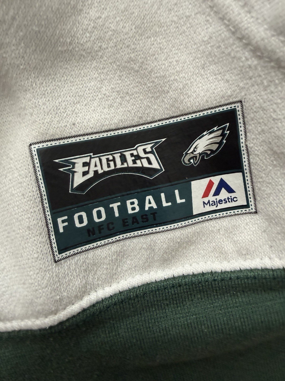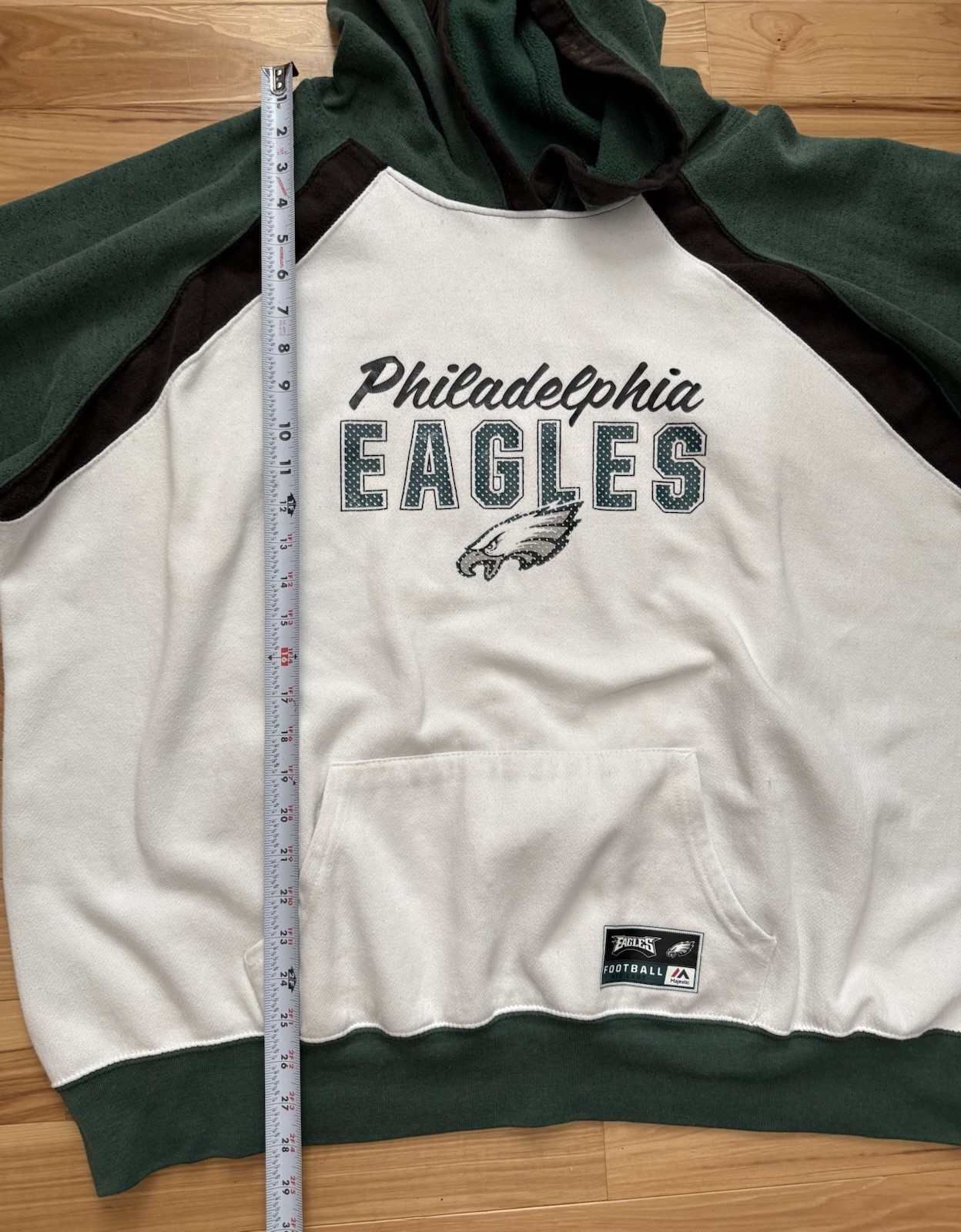 Vintage Philadelphia Eagles White/Green Raglan Hoodie With Pockets 2XL Majestic