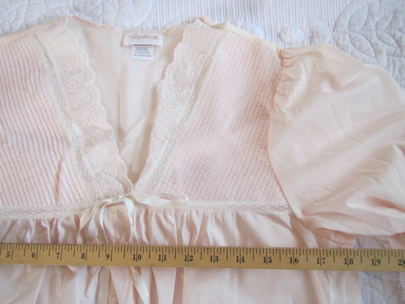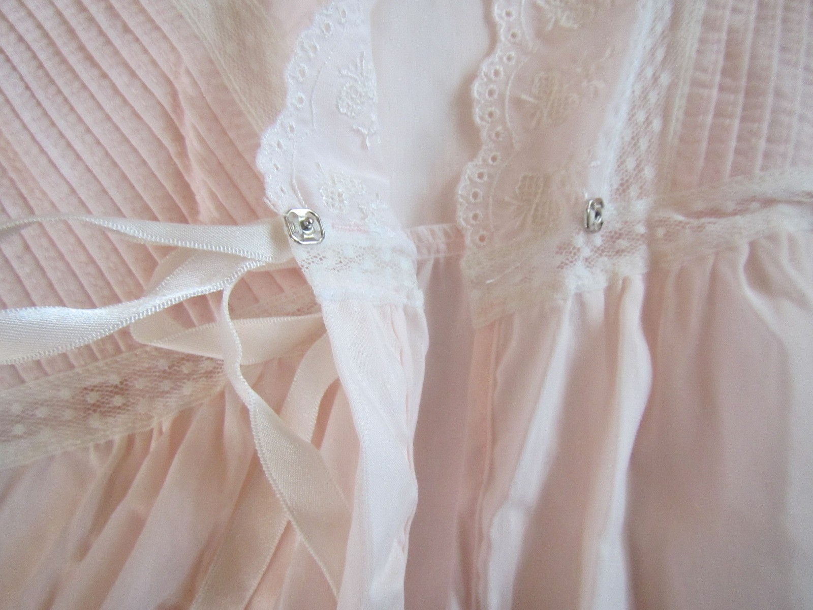 как выглядит Barbizon Vintage Pink Lace Satin Pleats Long Sleeve V-Neck Nightgown Medium фото
