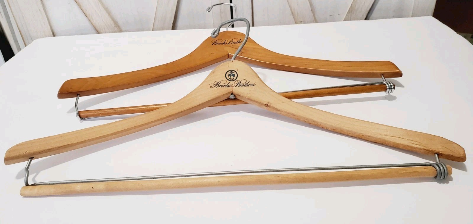 Lot Of 2 Vintage BROOKS BROTHERS Wooden Suit Coat Clothes Hangers Classics