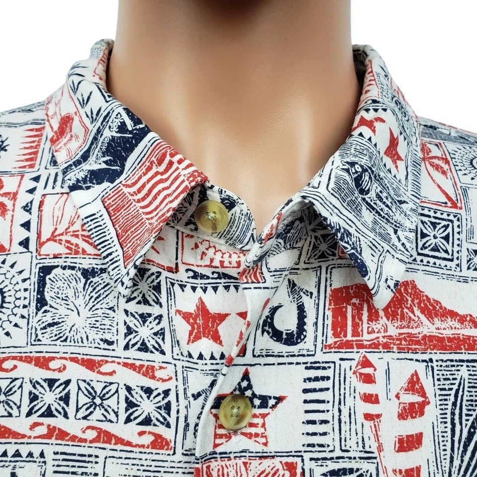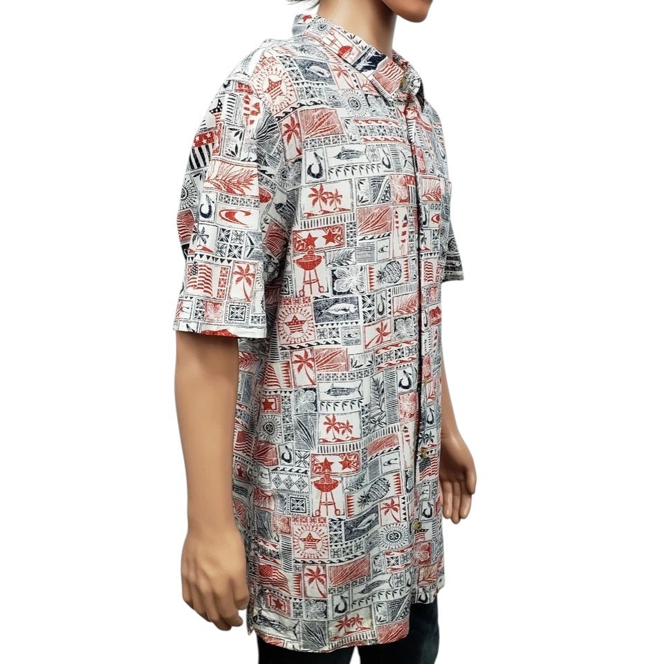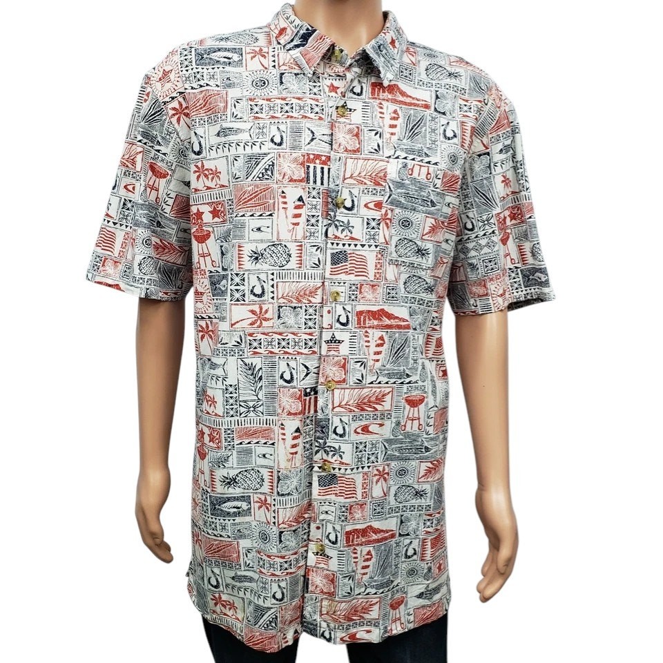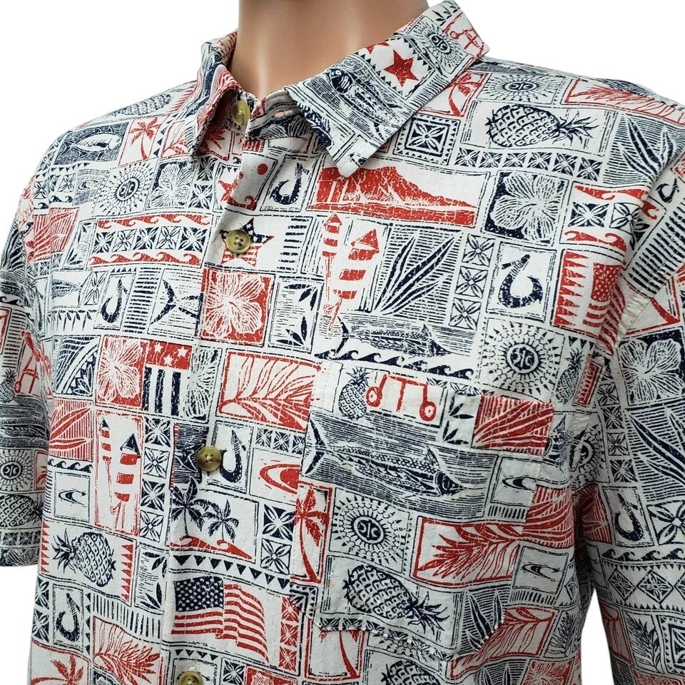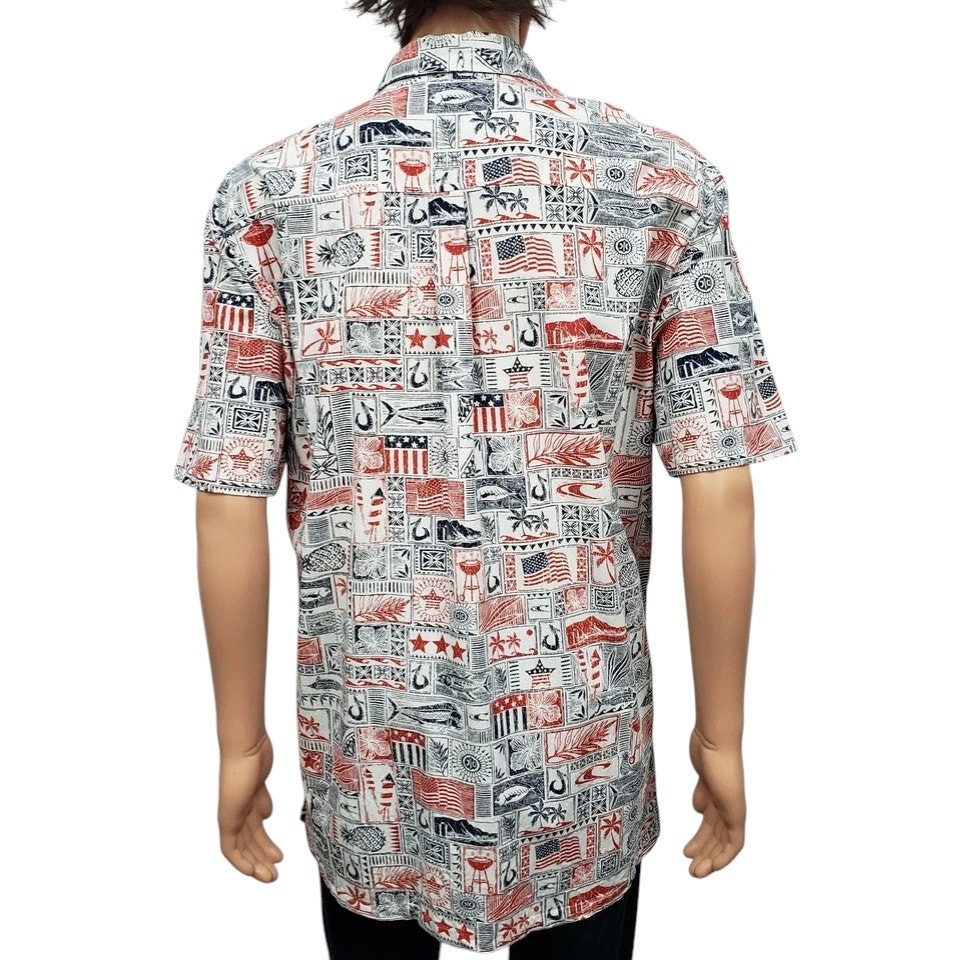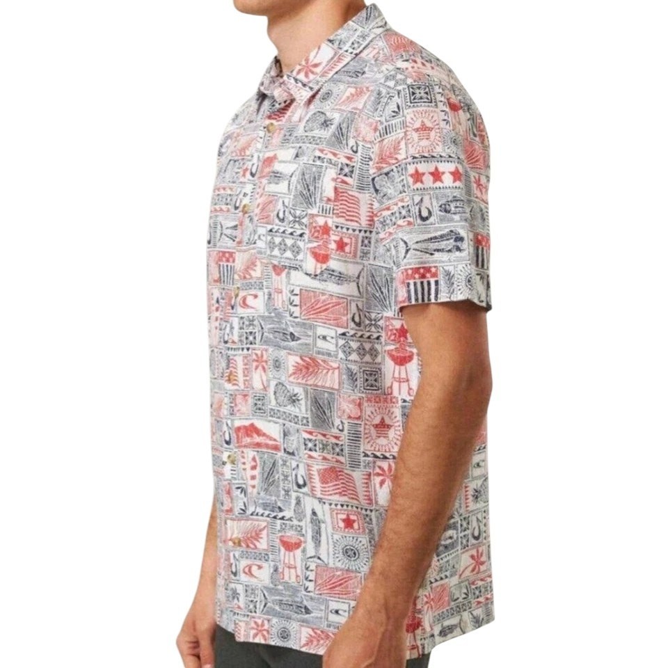 как выглядит Jack ONEILL Americana Men XXL Shirt Relaxed Fit Short Sleeve Patriot Hawaiian фото