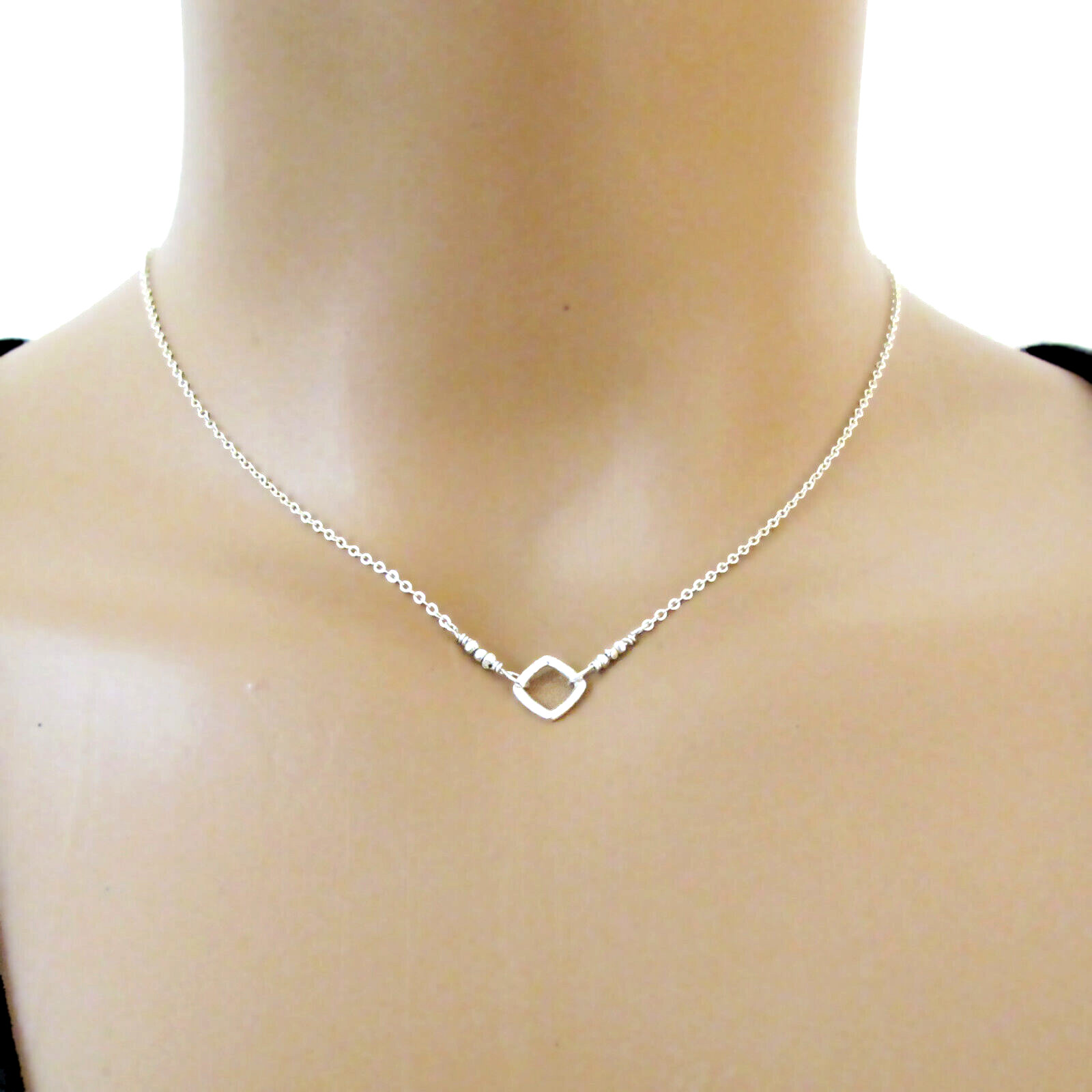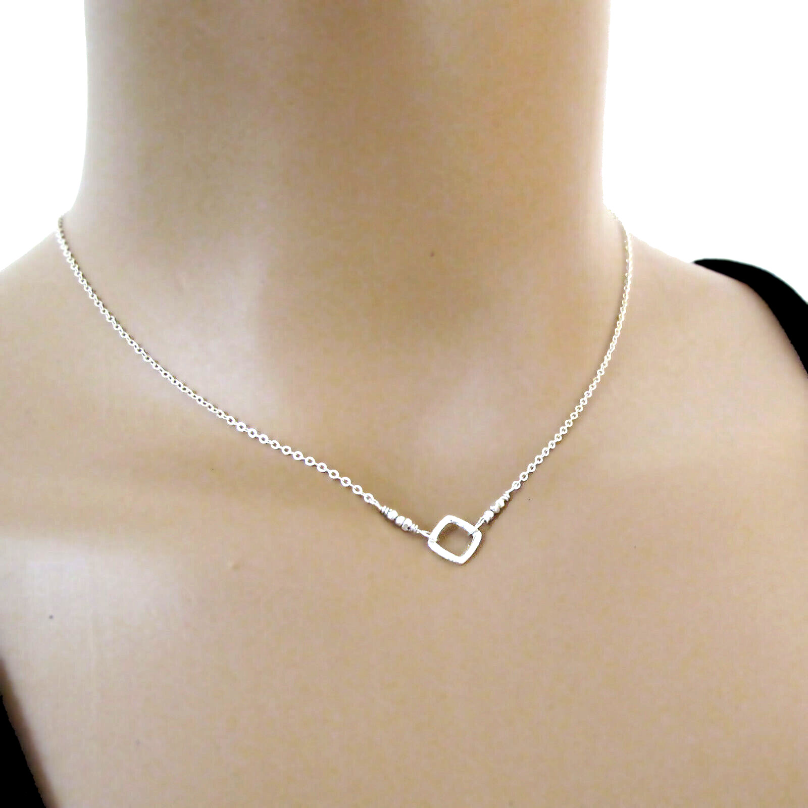 djs Sundance S Tiny Open Circle Square Solid Sterling Silver 16 Chain Necklace