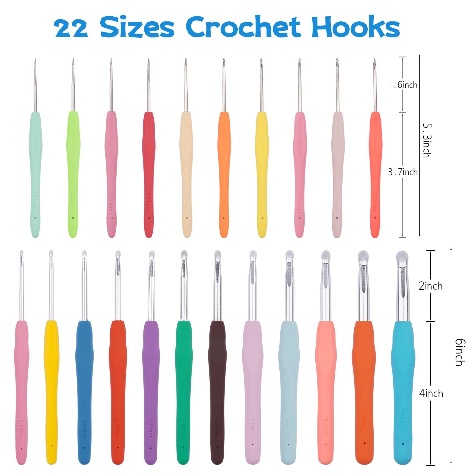22 Sizes Crochet Hooks Set with Storage Case 0.5mm-10mm Ergonomic Handle