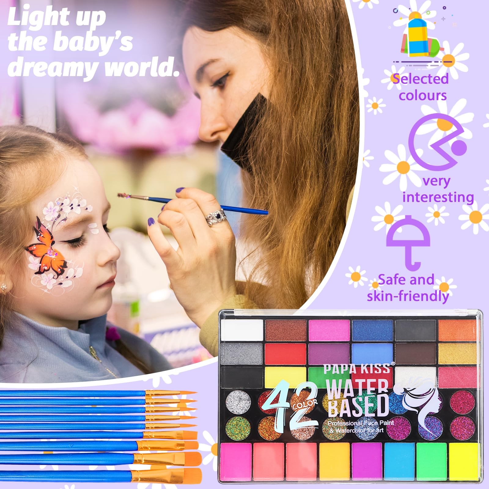 42 Color Face Painting Kit for Kids, Water Activated Face Paint Kit, Safe for...