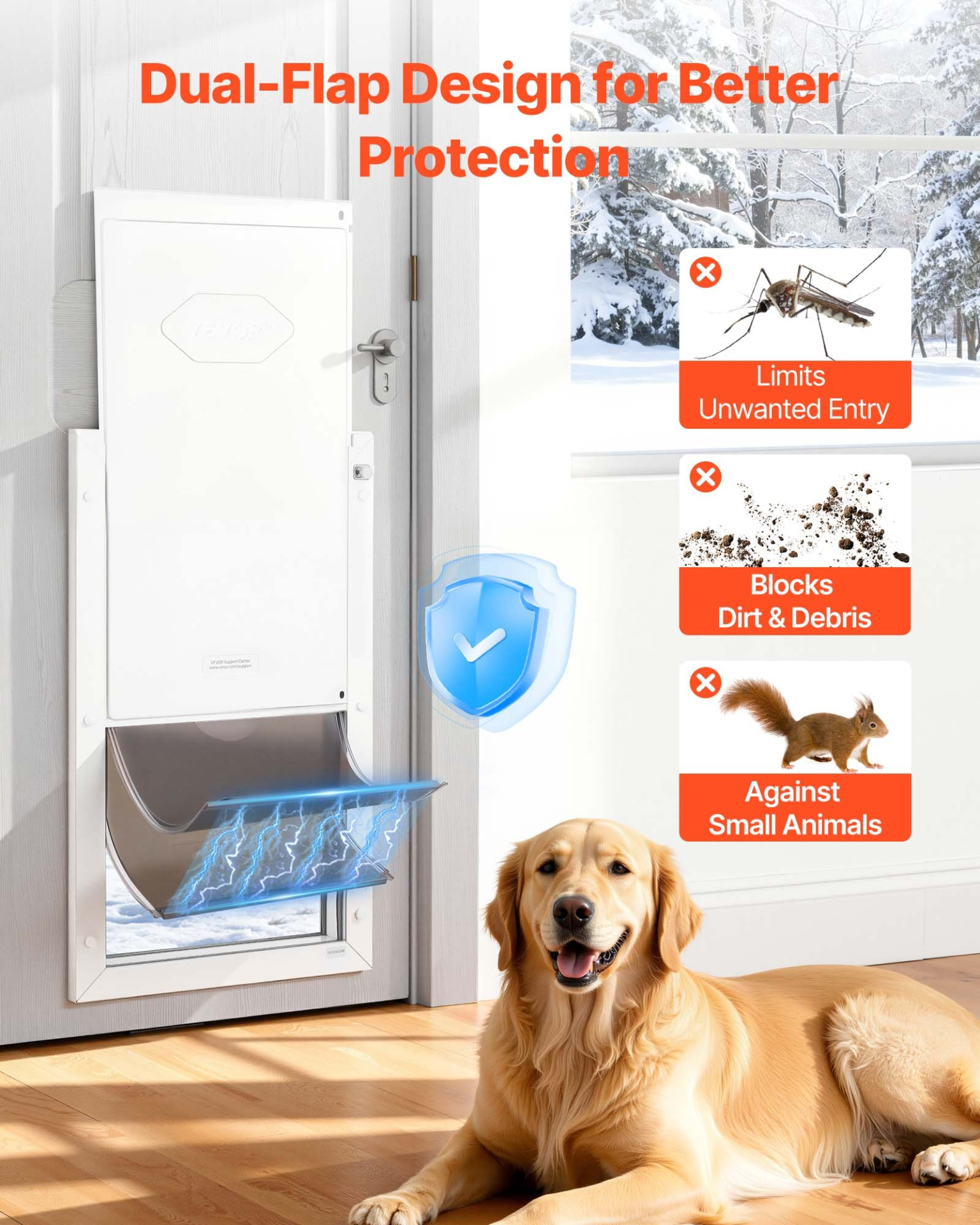 XL Dog Door Double Magnetic Flaps Metal Frame Weatherproof Easy Install White
