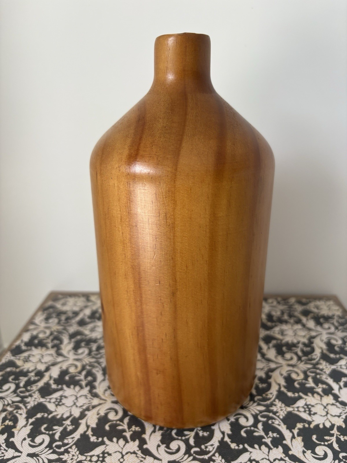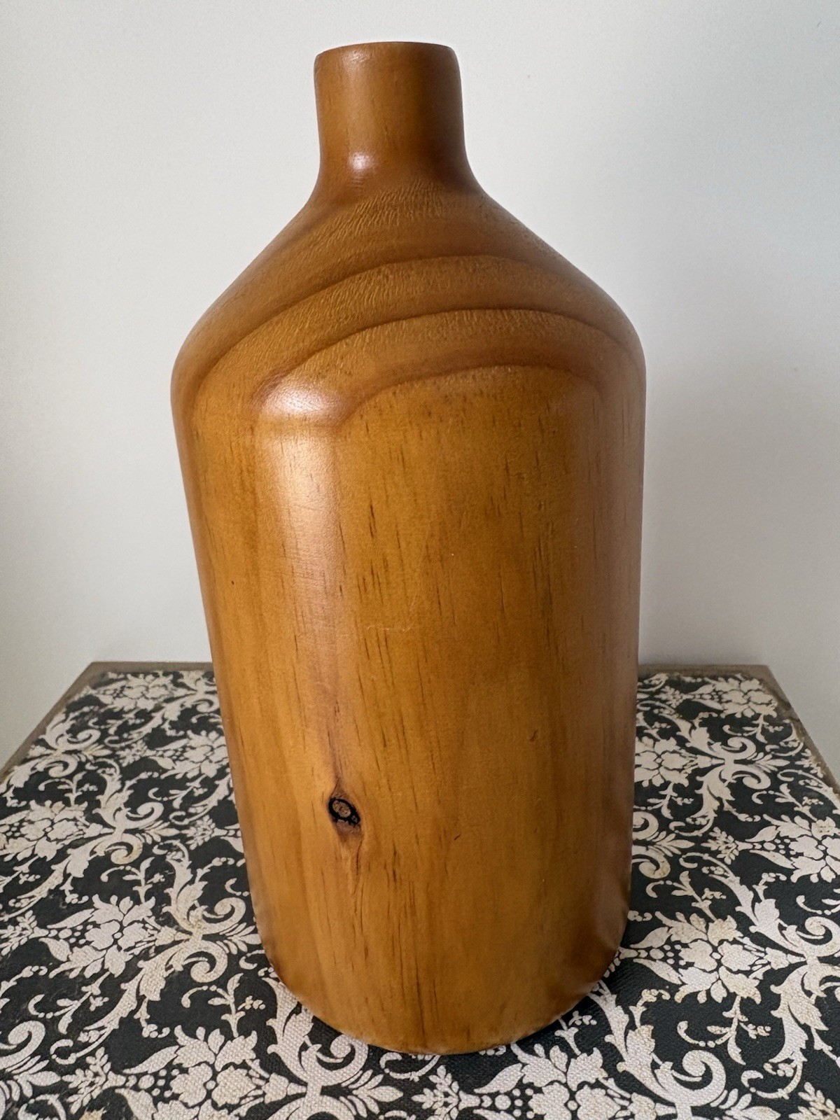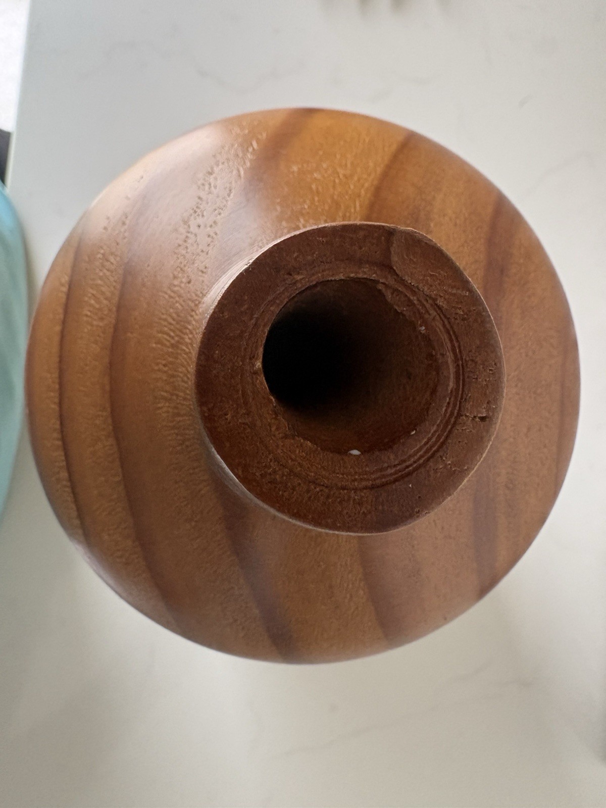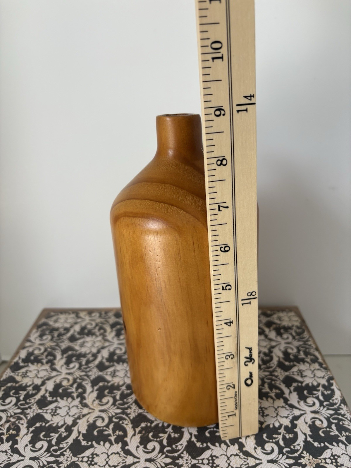Vintage Hand Crafted Turned Natural Wood Bud Vase 9 Tall 4 Wide Minimalist