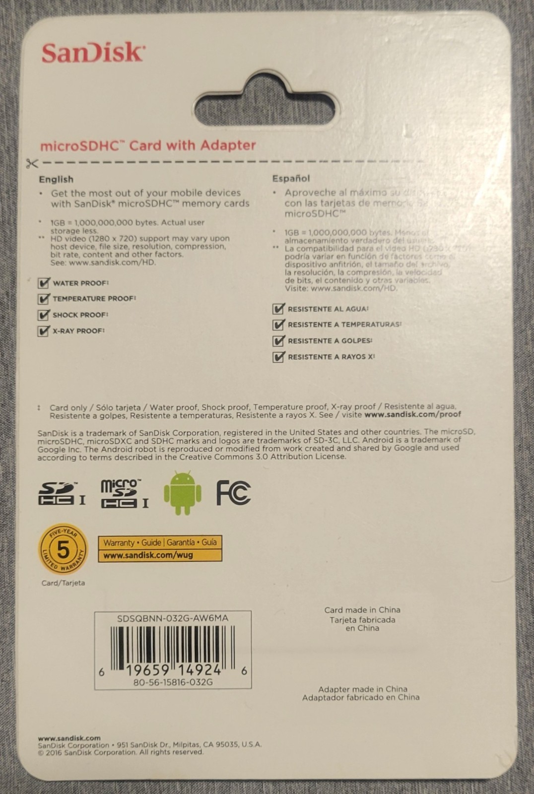 SanDisk SD 32GB - MicroSDHC Card With Adapter - New