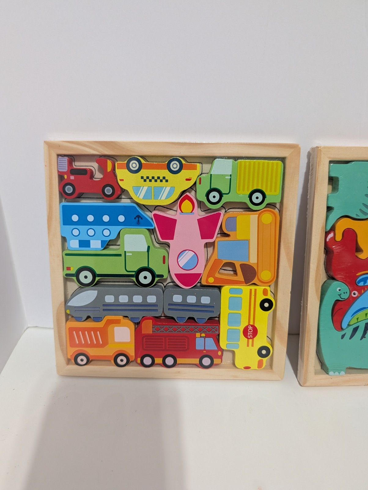 Wooden Educational Puzzle Set - Dinosaurs, Vehicles, Numbers - Ages 2-4
