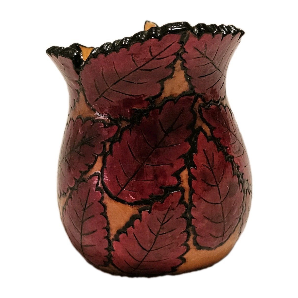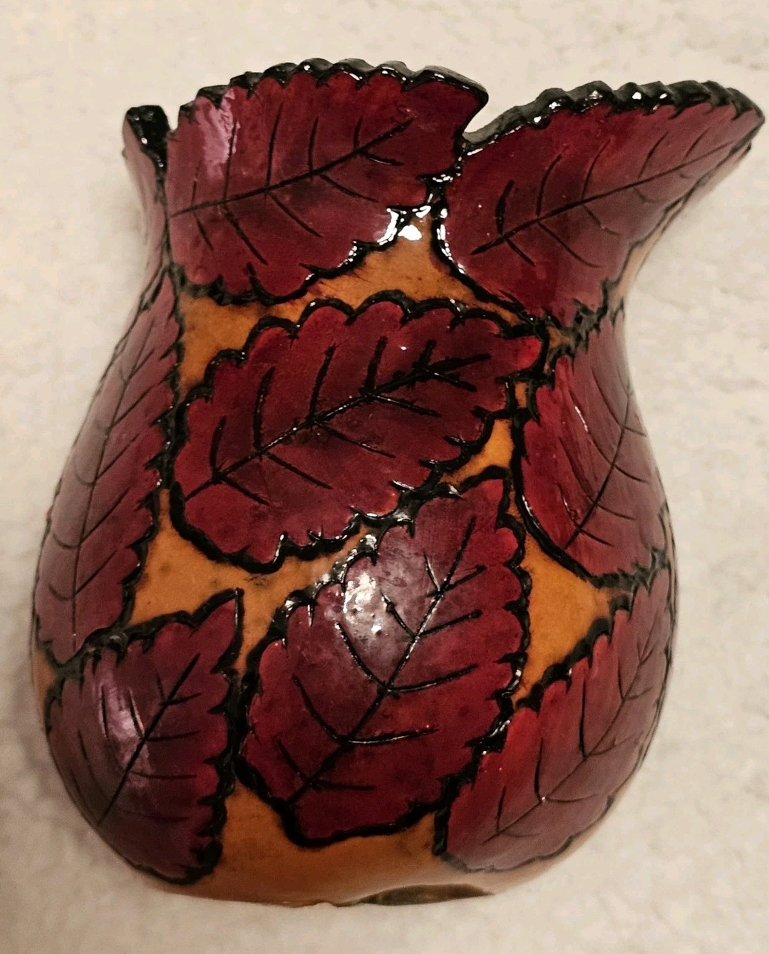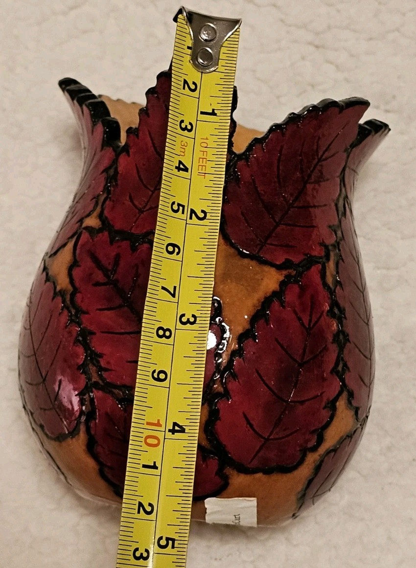 Hand carved Autumn Leaves Design Gourd Vase Artist W McCart One Of A Kind