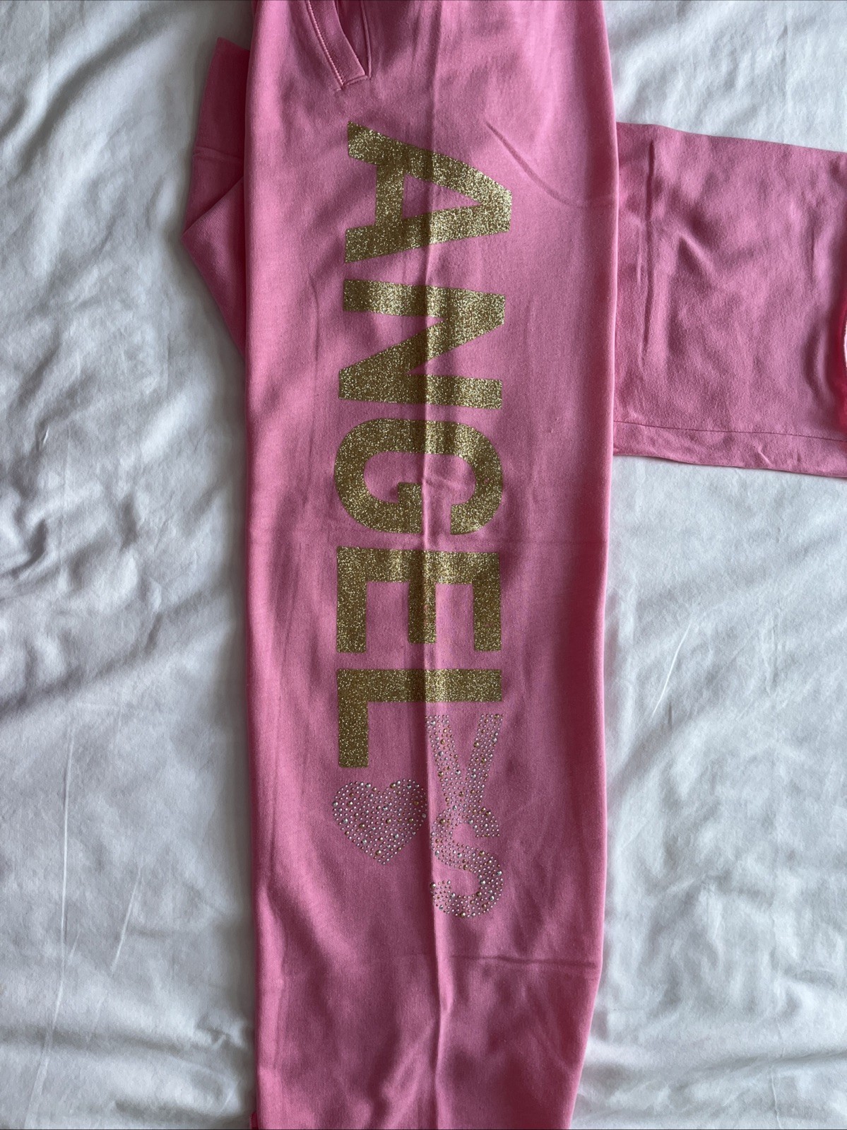 как выглядит Vintage Y2K Victoria s Secret Sweatpants Pink Wide Leg Flare Glitter Rhinestones фото