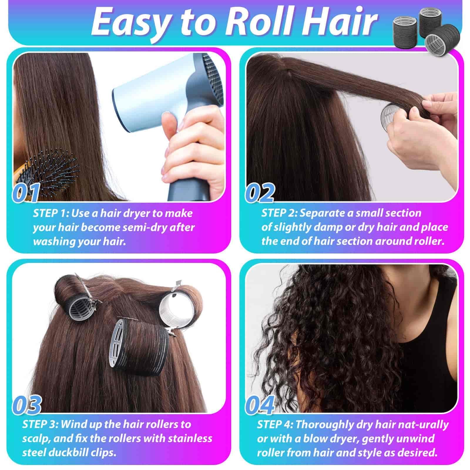 Hair Curlers Set with 24 Rollers 6 Jumbo 6 Large, Medium, Small and Clips for