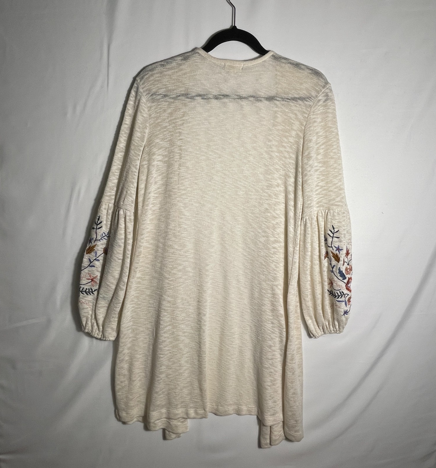 Women Cream Long Cardigan Kimono Embroidered Boho Cottagecore Indie Prairie Sz S