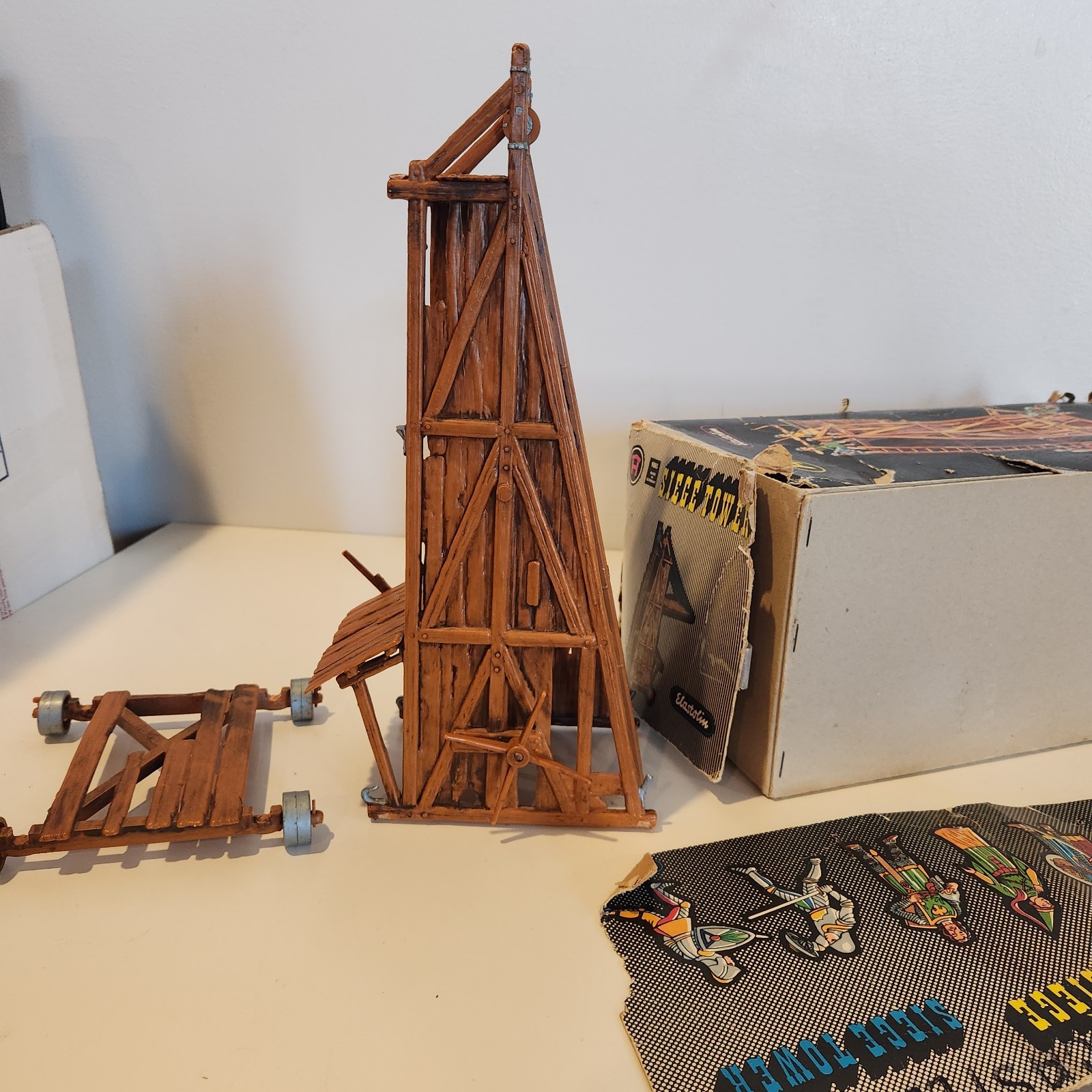 Vintage Elastolin Belagerungsturm Siege Tower Trebuchet Catapult 9885 with Box