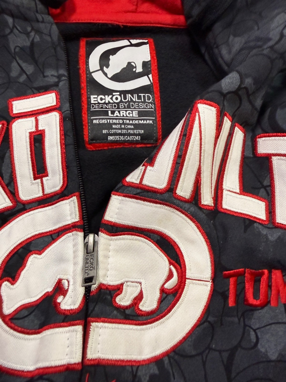 ECKO UNLTD Zip Hoodie Y2K Graffiti Print Black Red Men s Size L