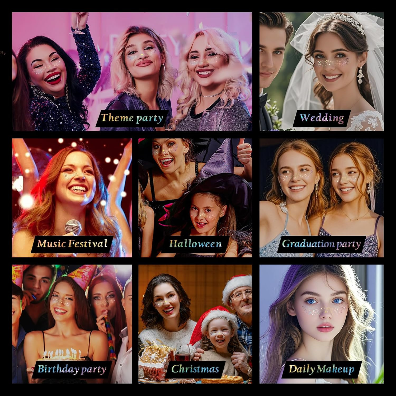 24Pcs Glitter Freckles Makeup Patches-Holographic-Face Glitter Speckles, Sparkle