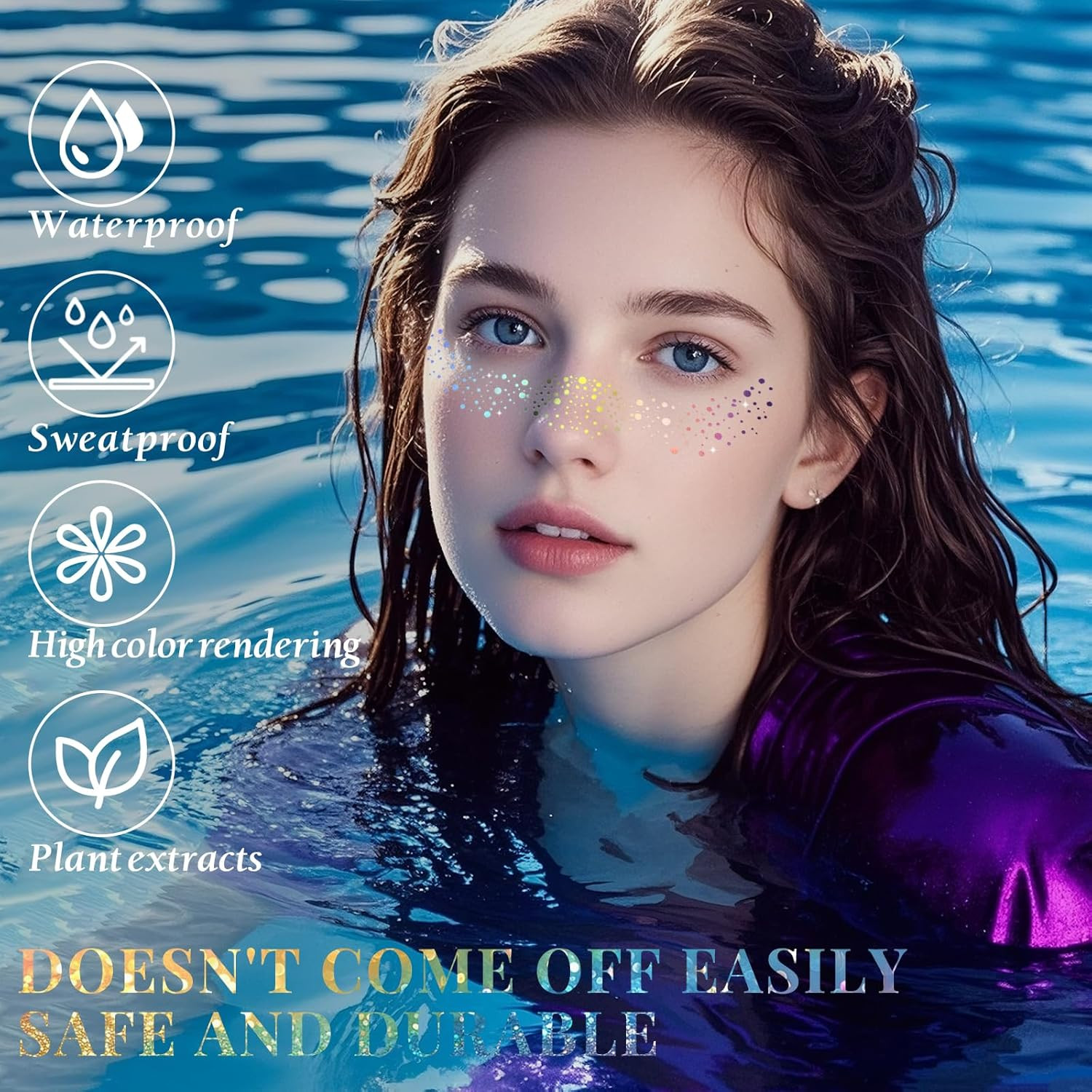 как выглядит 24Pcs Glitter Freckles Makeup Patches-Holographic-Face Glitter Speckles, Sparkle фото
