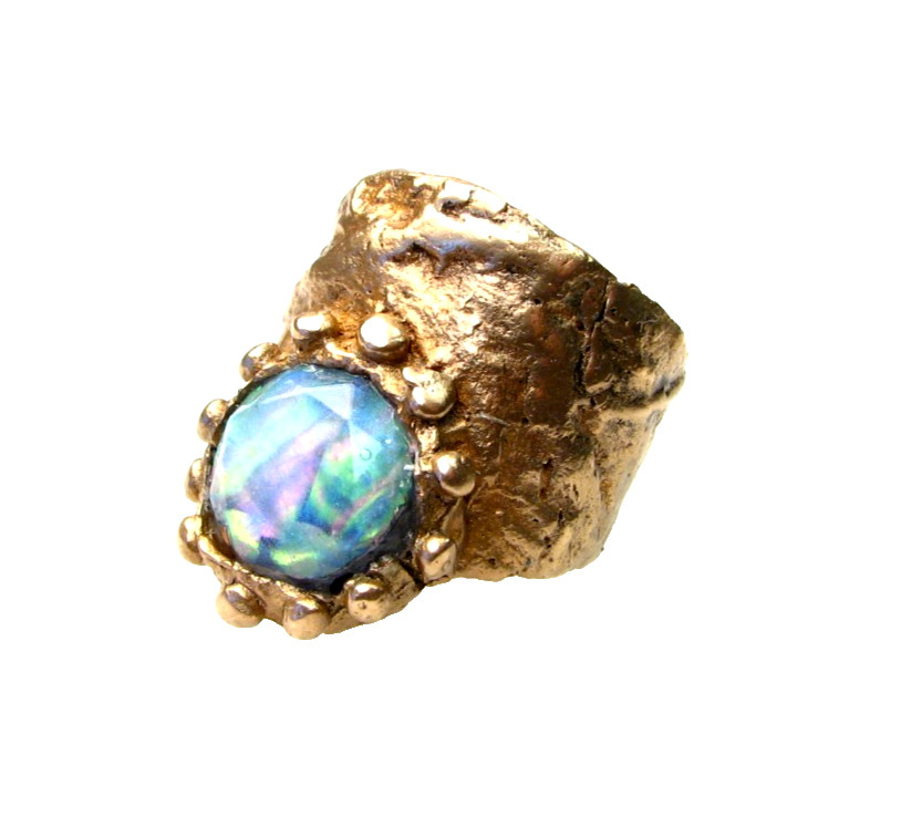 Antique Style Golden Bronze Ring-Abalone-Size 9,5