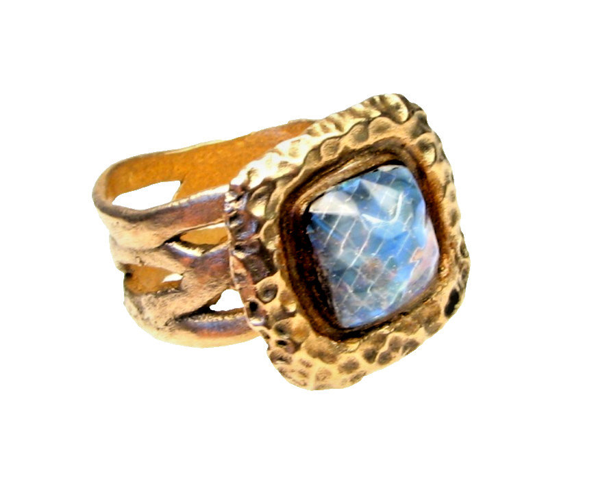 Antique Style Golden Bronze Ring-Abalone-Size 10