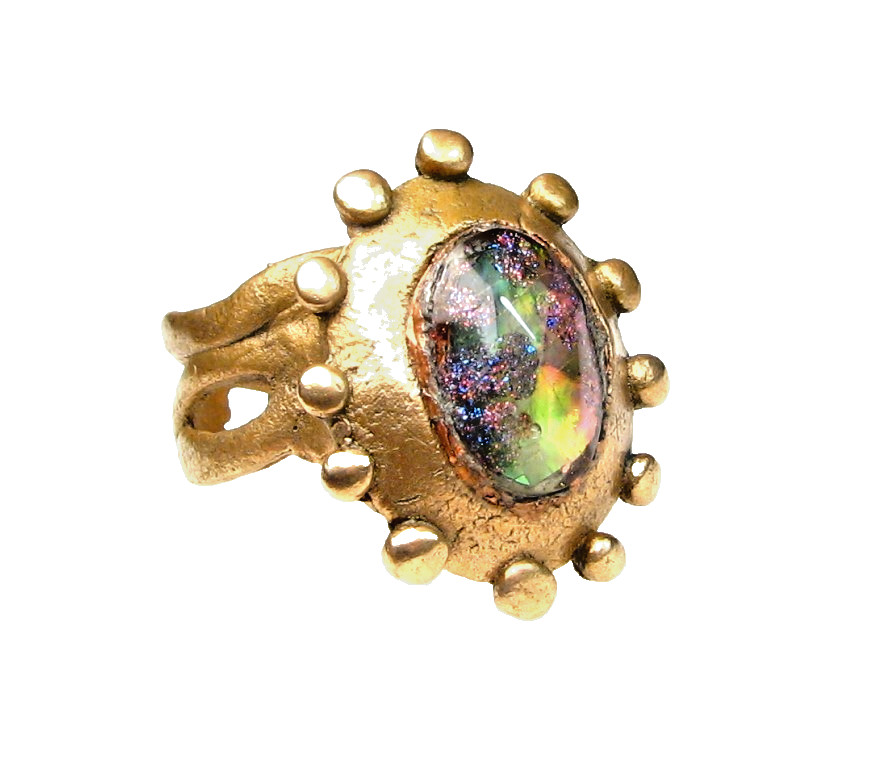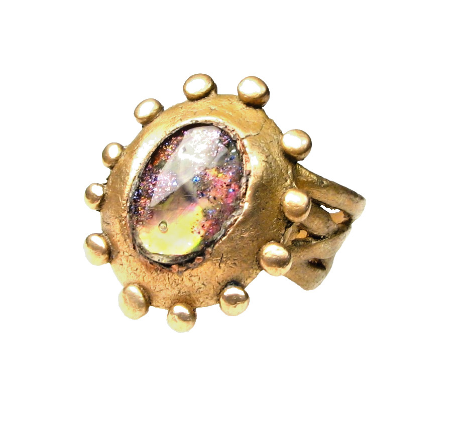 Antique Style Golden Bronze Ring-Abalone-Size 10