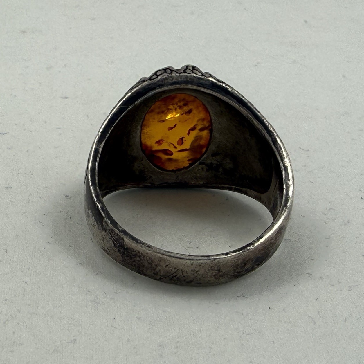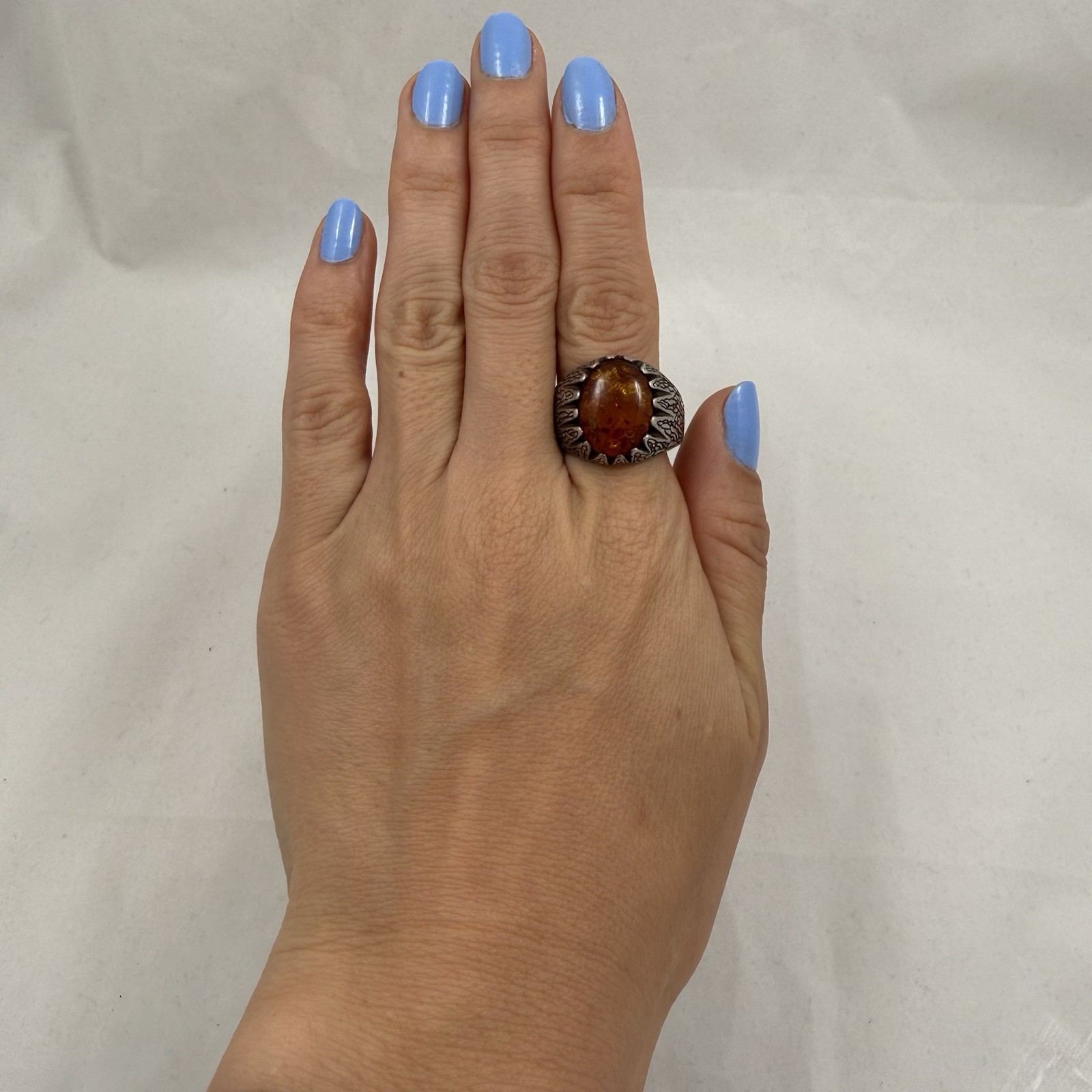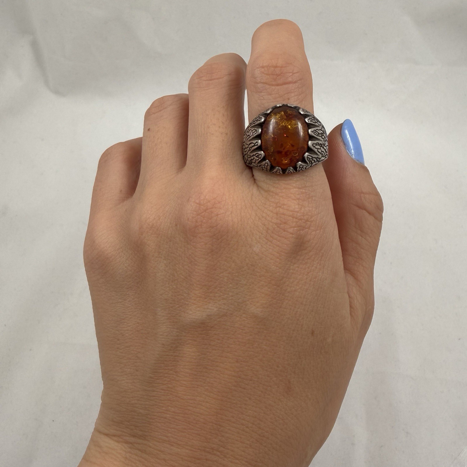 как выглядит Large Vintage Sterling Silver 925 Amber Ring Size 10.75 / 9.2 Grams фото
