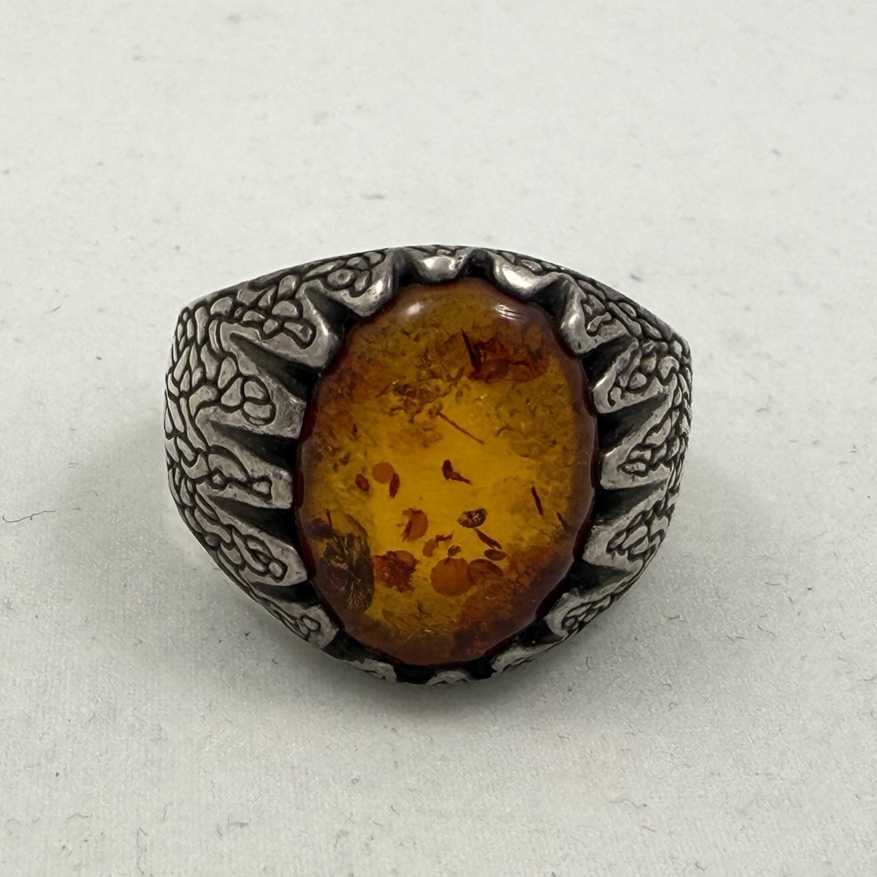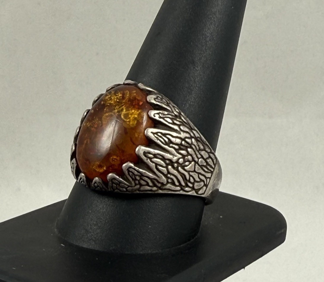 Large Vintage Sterling Silver 925 Amber Ring Size 10.75 / 9.2 Grams
