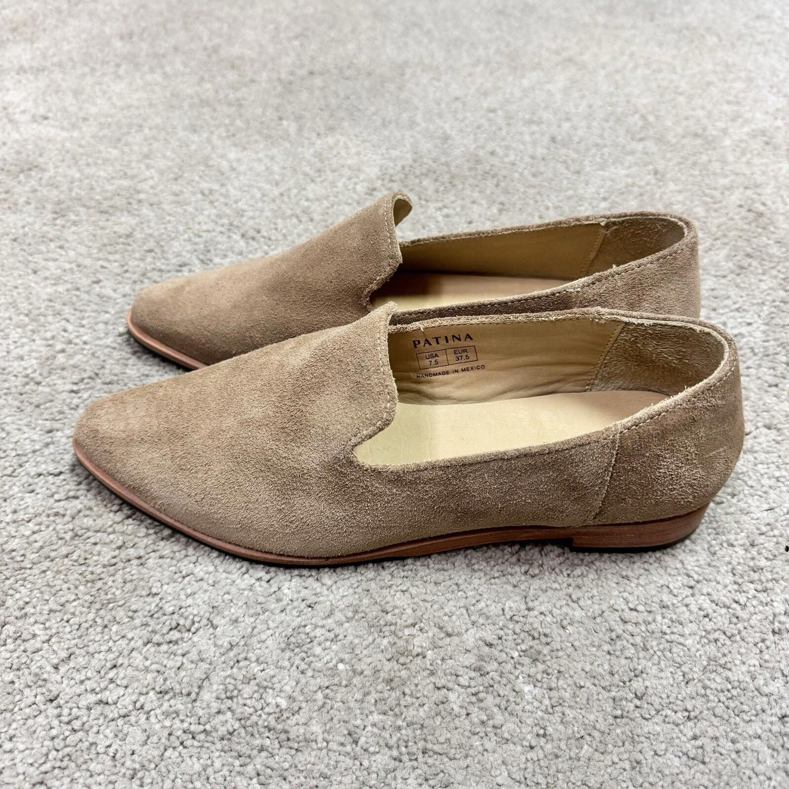Patina Portland Loafer Leather Beige Almond Toe Slip On Shoes Women s 7.5