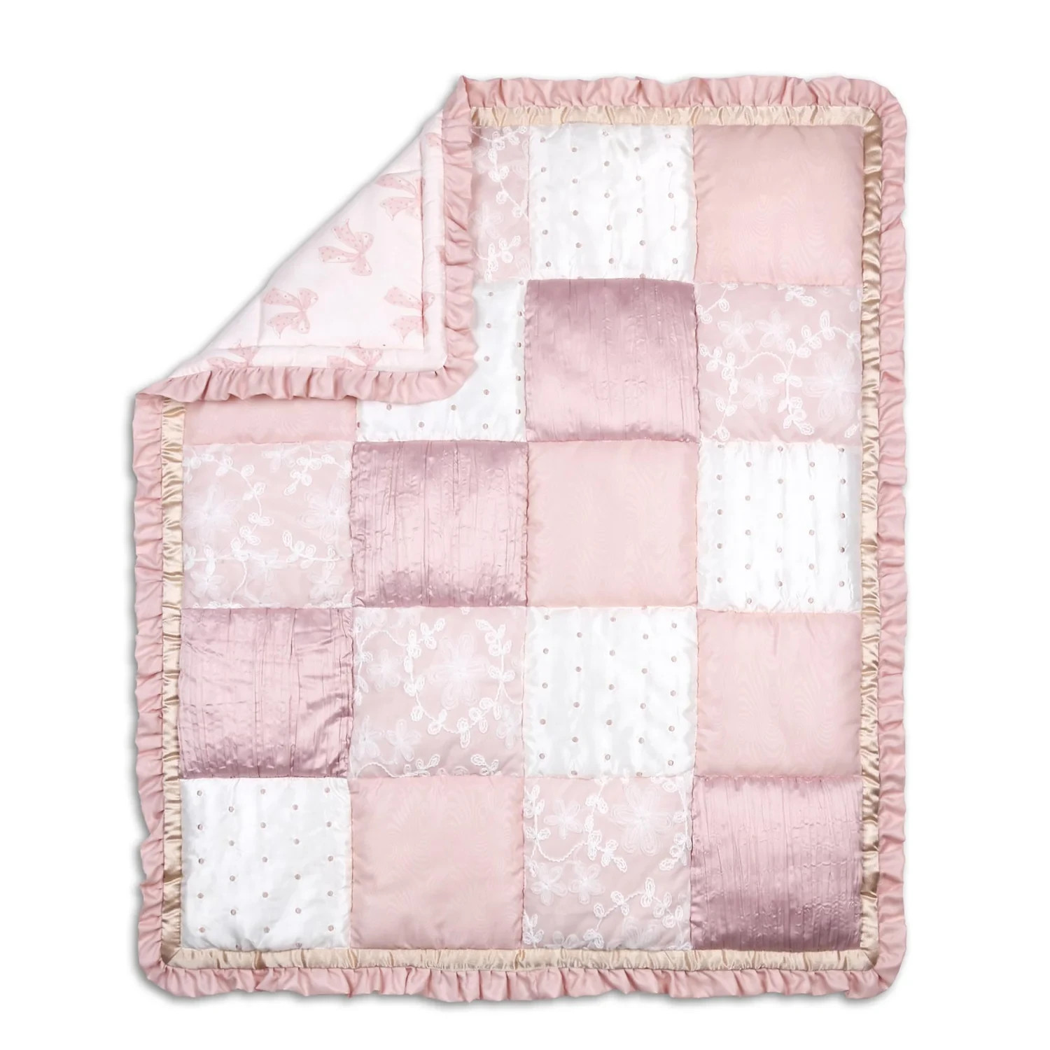 как выглядит Sophisticated Grace 3 Piece Pink Baby Girls Crib Bedding Set by The Peanutshell фото