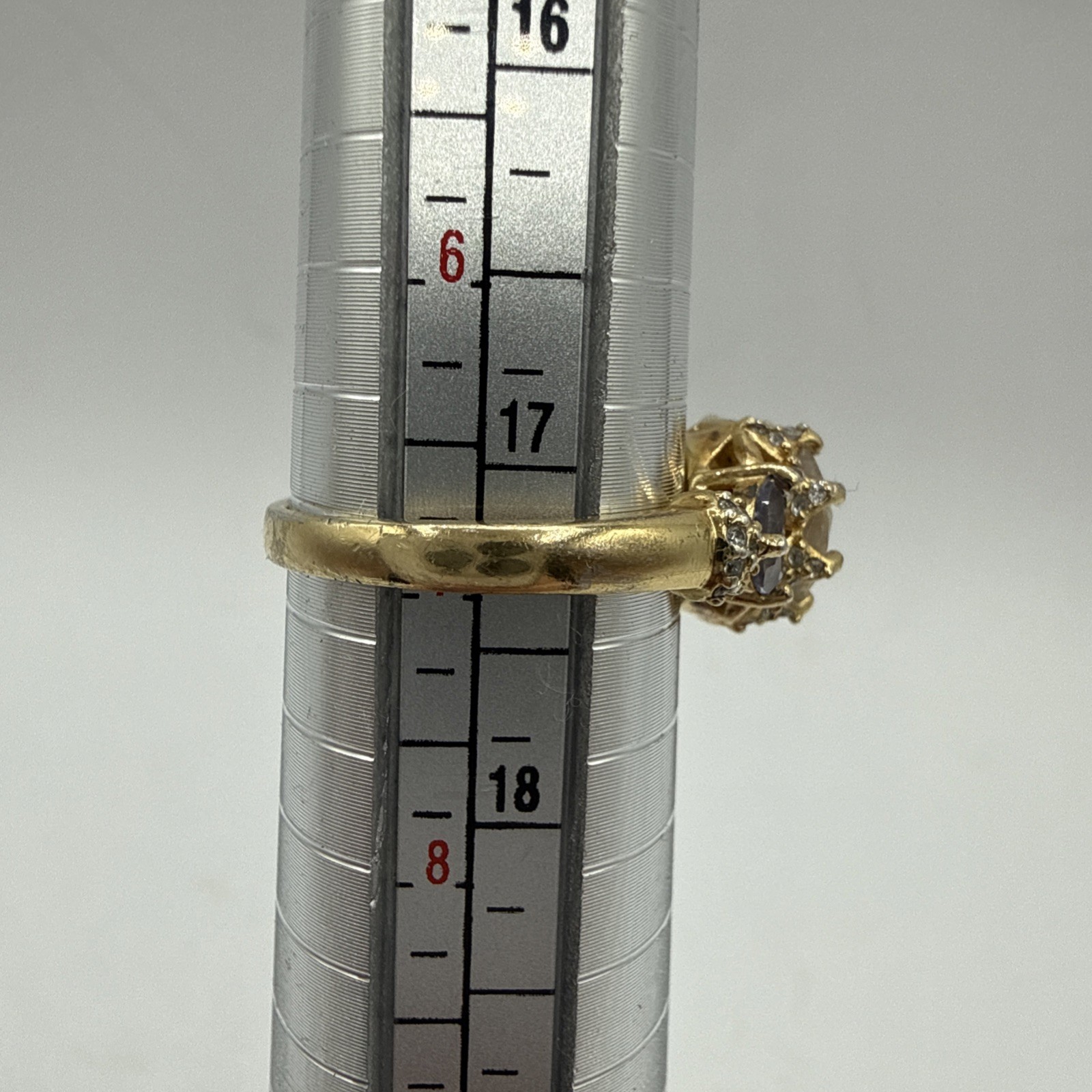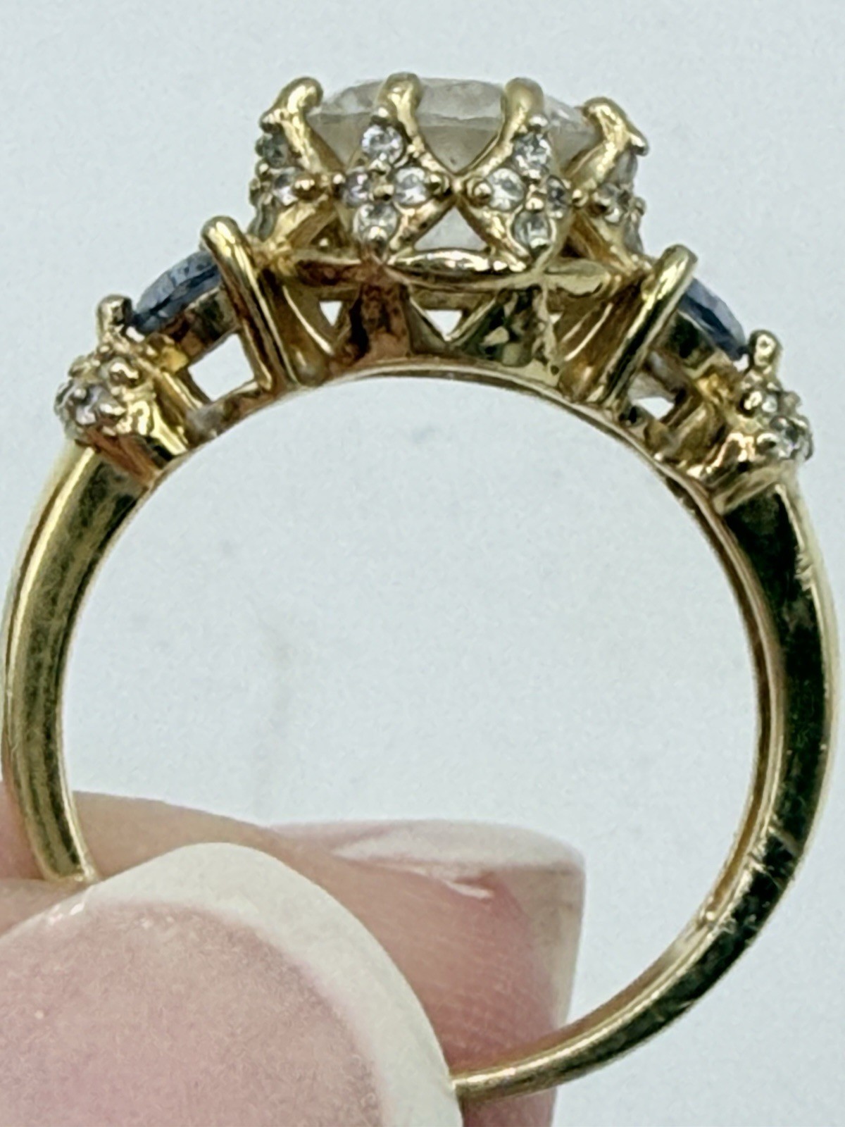 как выглядит Vintage-Style 925 Silver Gold Vermeil 3-Stone Ring Round CZ Blue Sapphire China фото