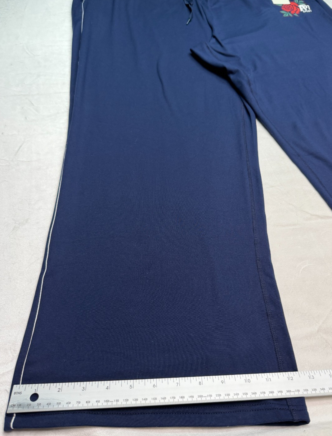 как выглядит A ropostale Sport Women s 1X Navy Fleece Wide Leg Pants Rose Logo Drawstring фото
