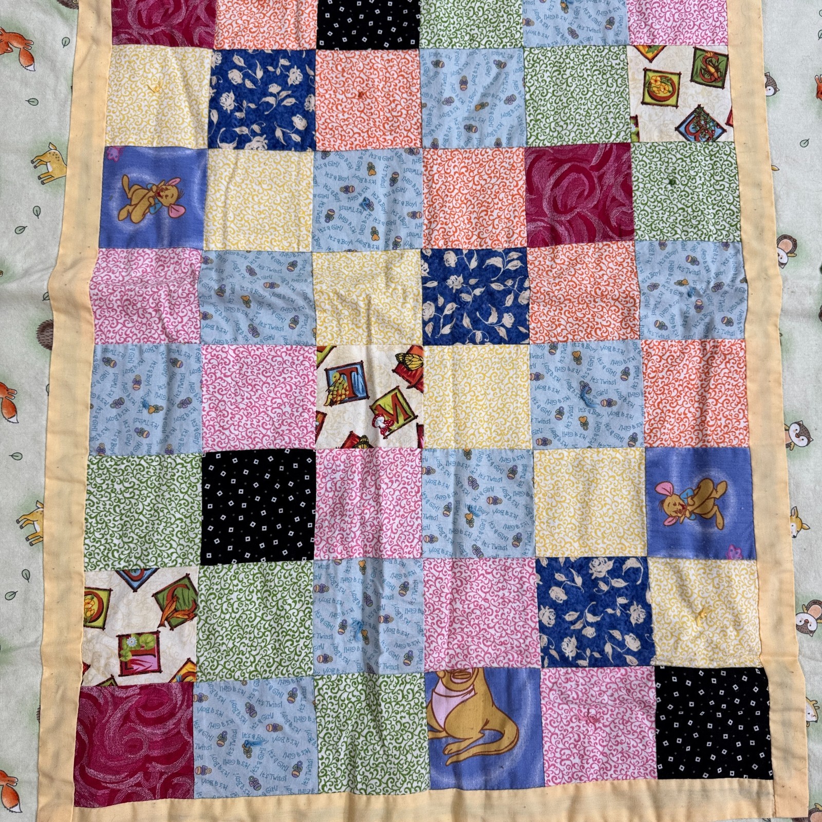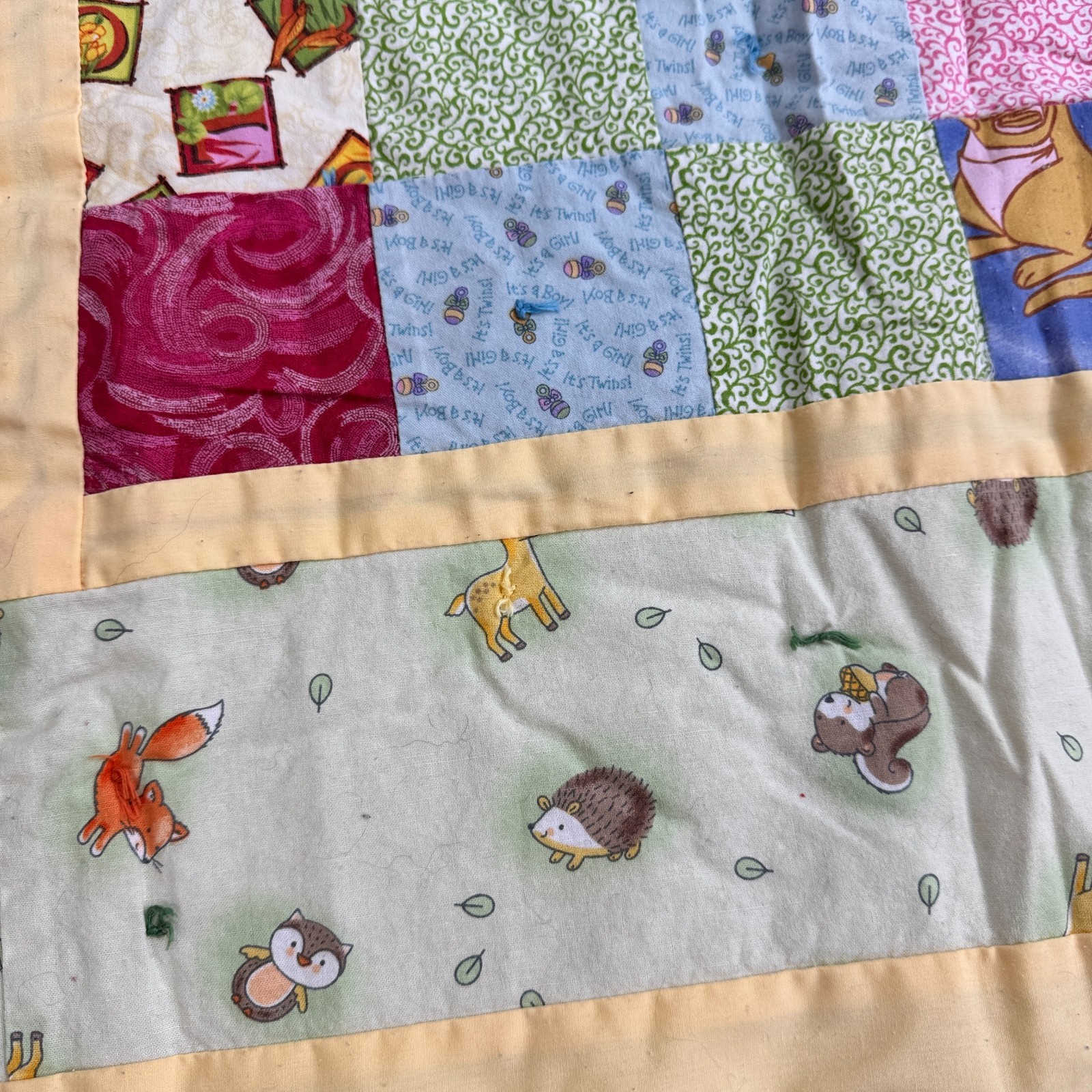 Handmade Baby Quilt Baby Animals 42x34 inches Yellow