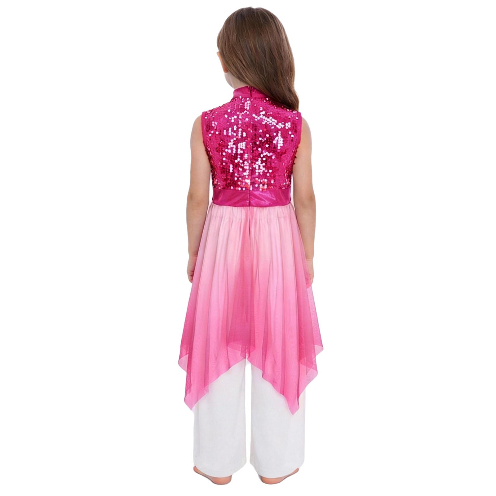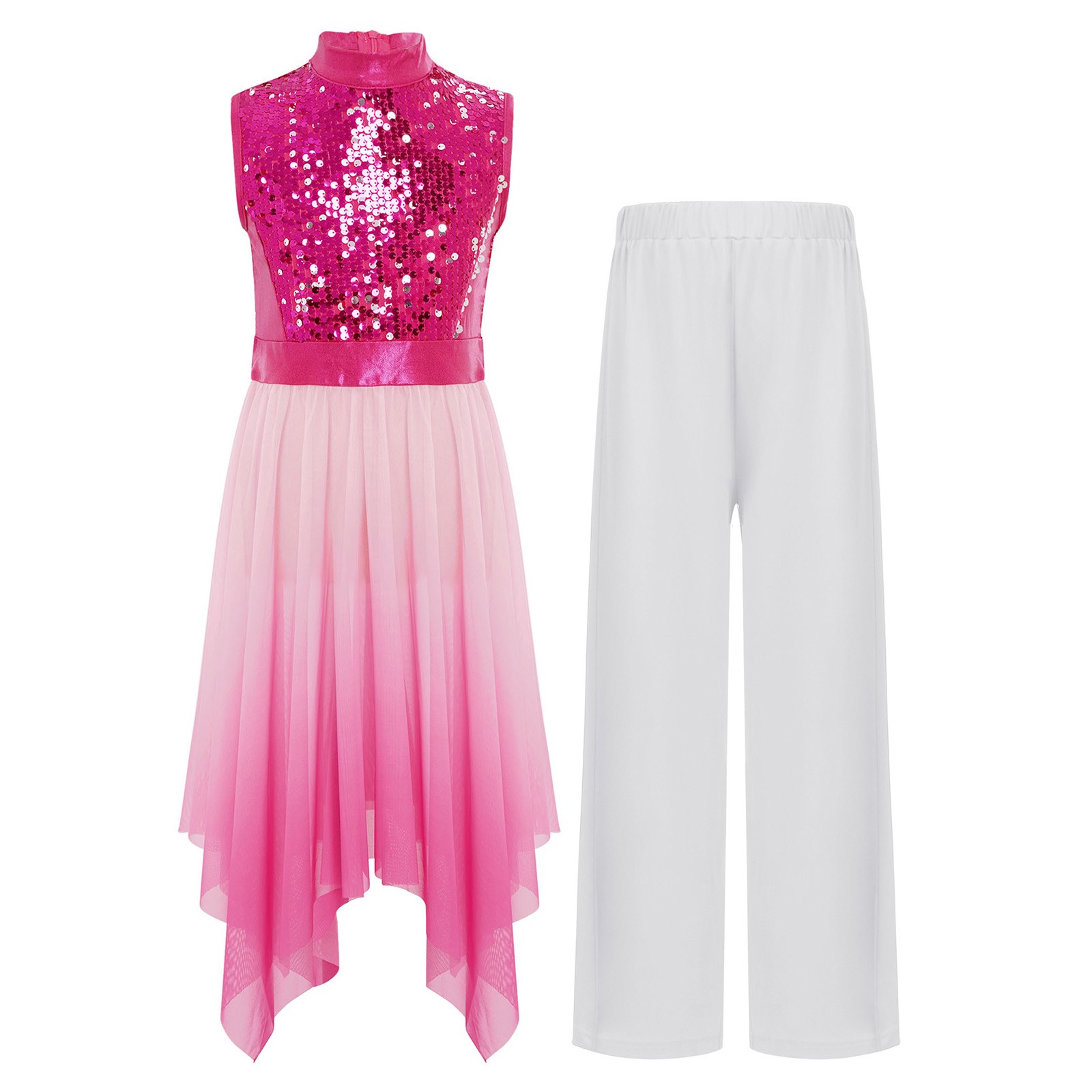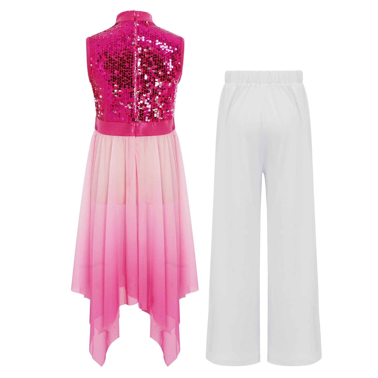 Girls Praise Dance 2 Piece Worship Lyrical Dress Celebration Shiny Sparkly