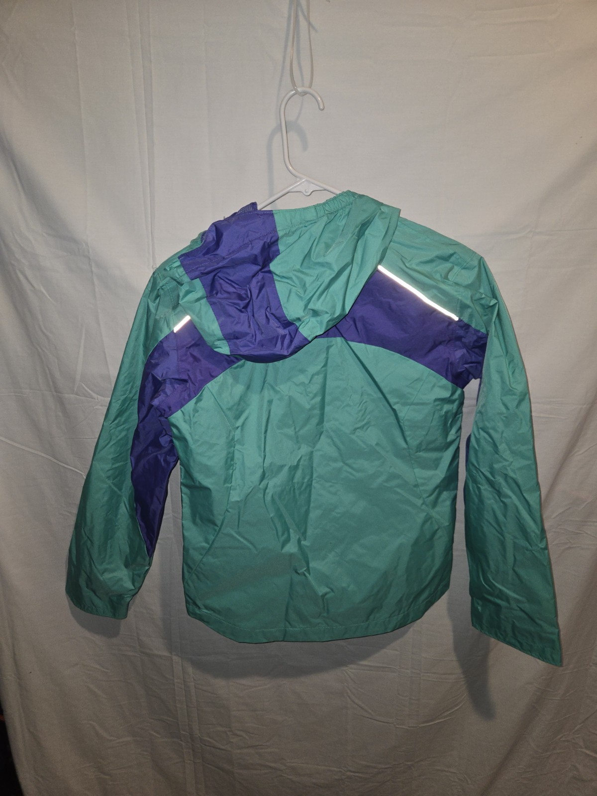 Columbia Omni Shield Girl s Hooded Rain Jacket Teal Purple Zip Up Size L 14-16