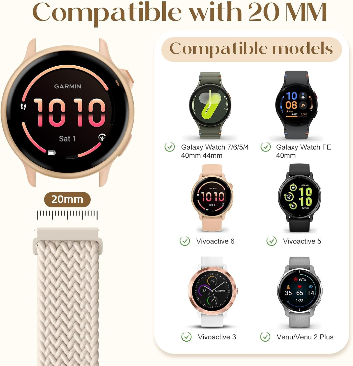 как выглядит 20Mm Magnetic Braided Nylon Bands Compatible with Garmin Vivoactive 5 Watch Band фото