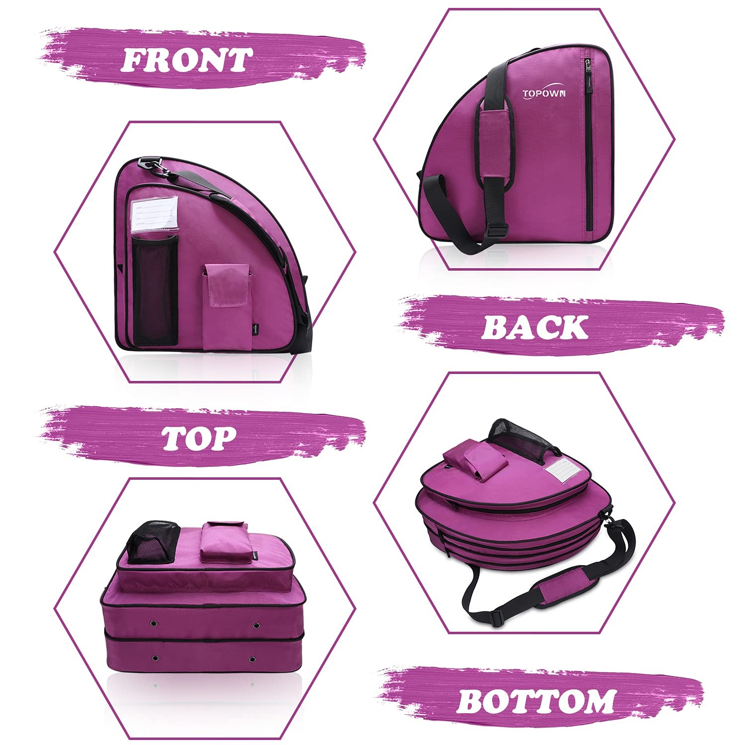 TOPOWN Premium Ice Skate Bag - Roller Skates Blades for Men Women Black Rose