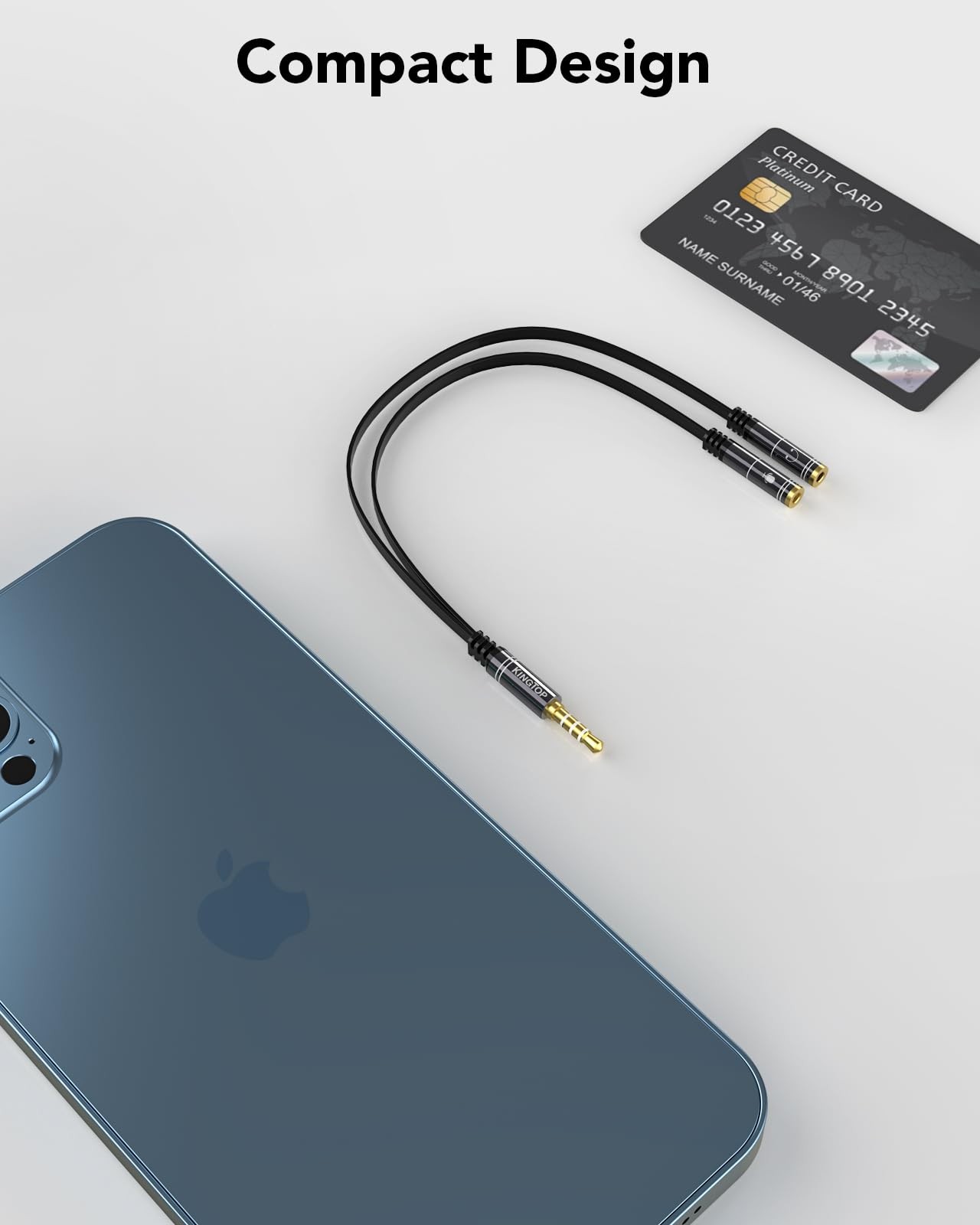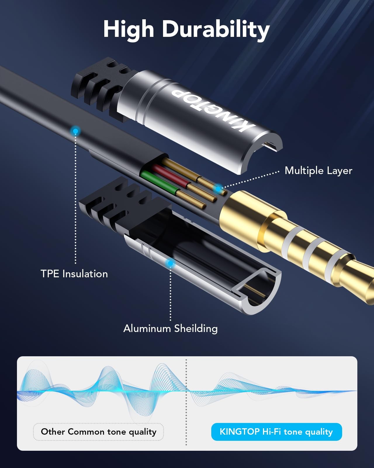 KINGTOP 3.5mm Headphone Mic Splitter Adapter - 1 Male to 2 0.65ft, Black