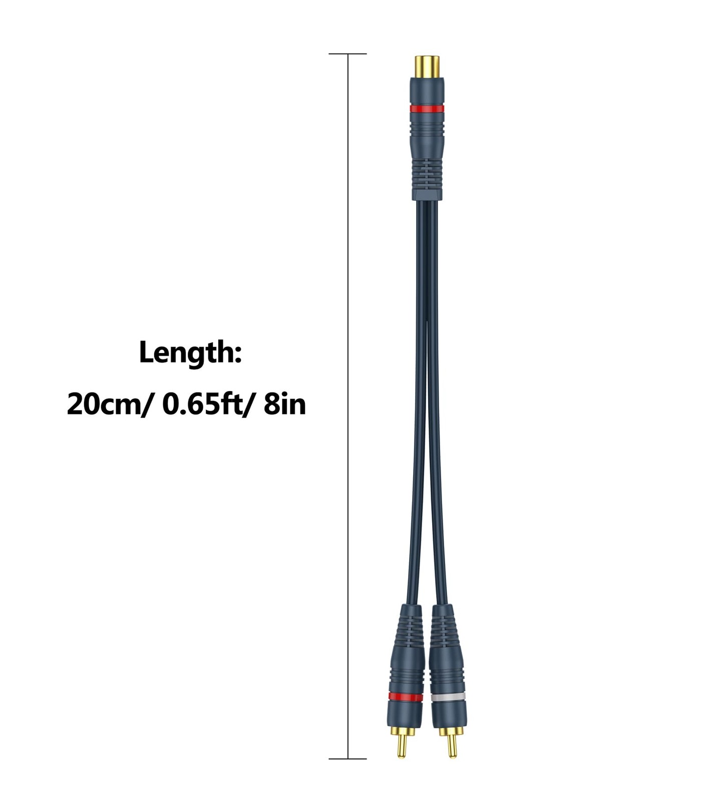 DteeDck RCA Splitter 1 Female to 2 Male 2 Pack, Y 0.66ft, Dark Blue