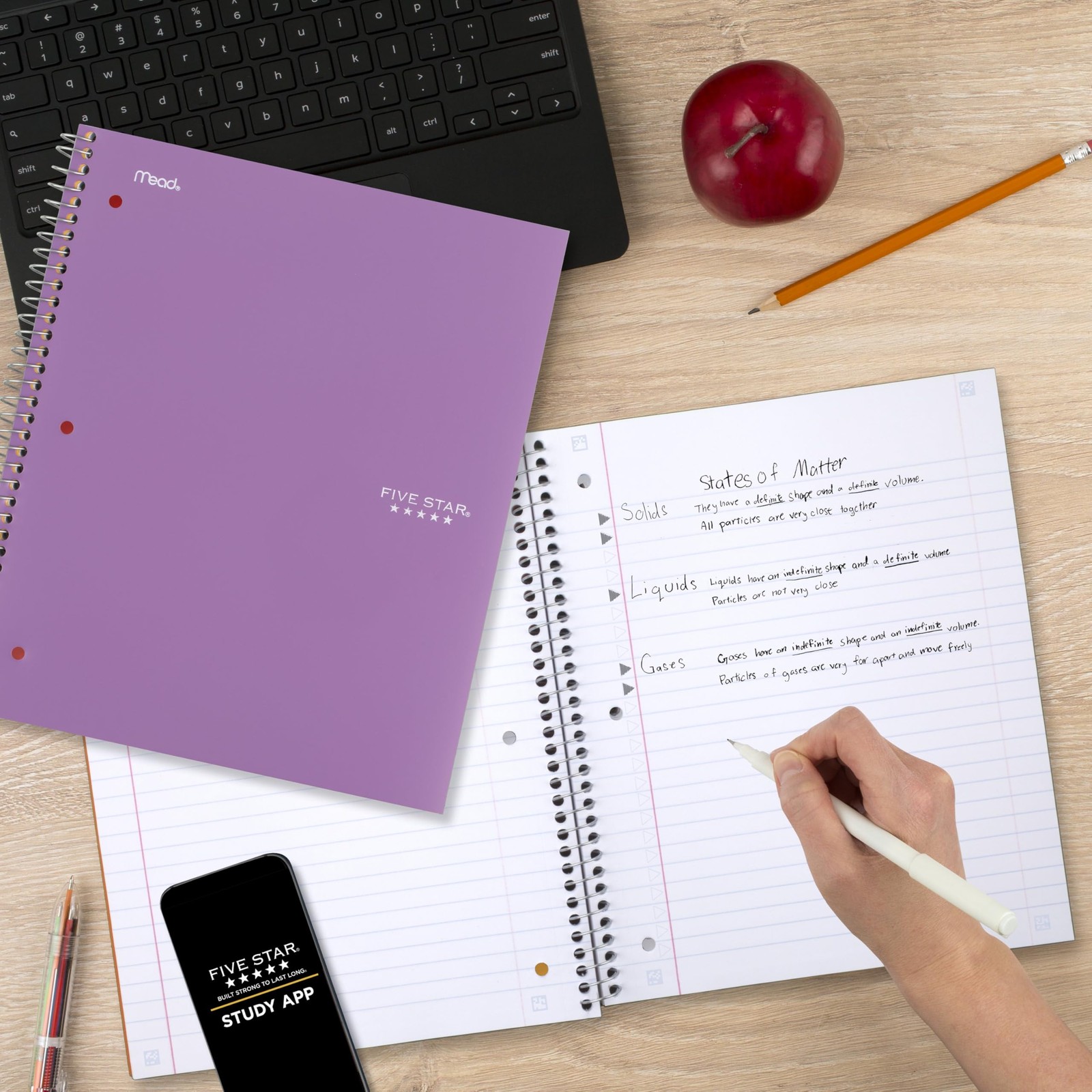 Five Star Spiral Notebook Study App, 3 Subject, Wide Pack of 1, Purple
