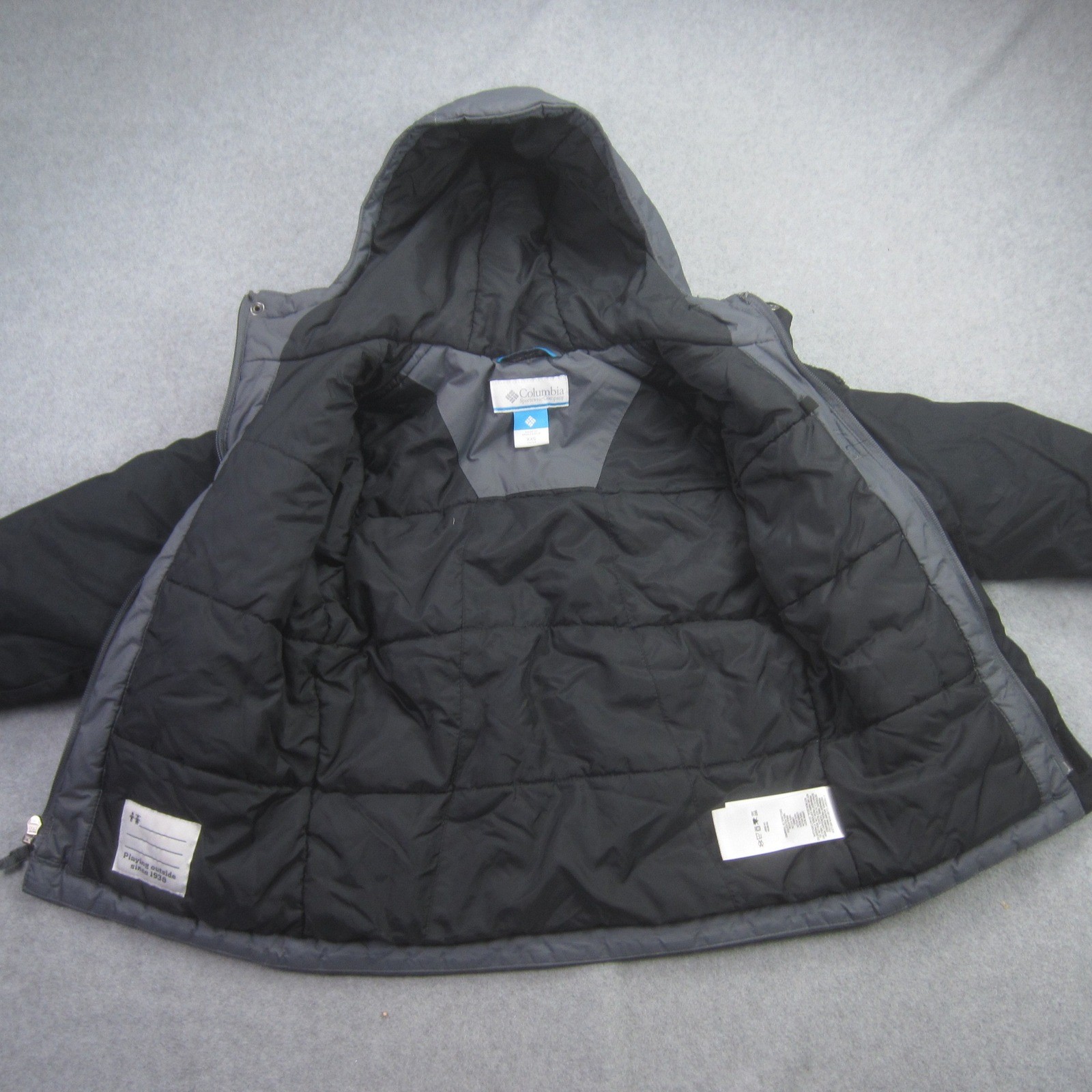 как выглядит Columbia Jacket Boys XXS 4/5 Black Gray Winter Puffer Hooded Insulated фото