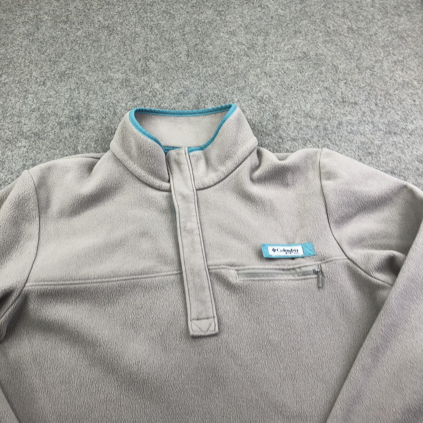 как выглядит Columbia Sweater Womens Medium Gray Fleece Pullover Mock Neck Pocket Outdoor фото