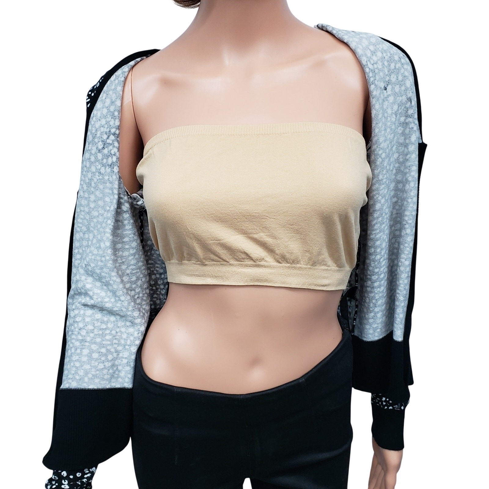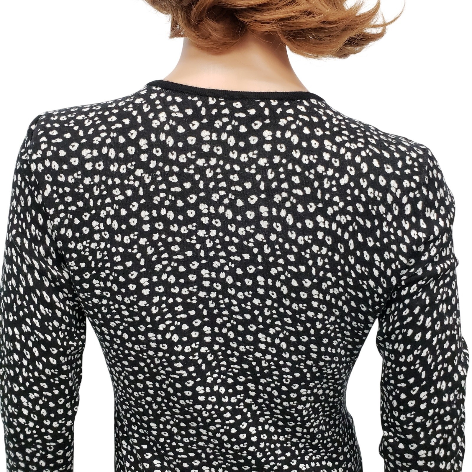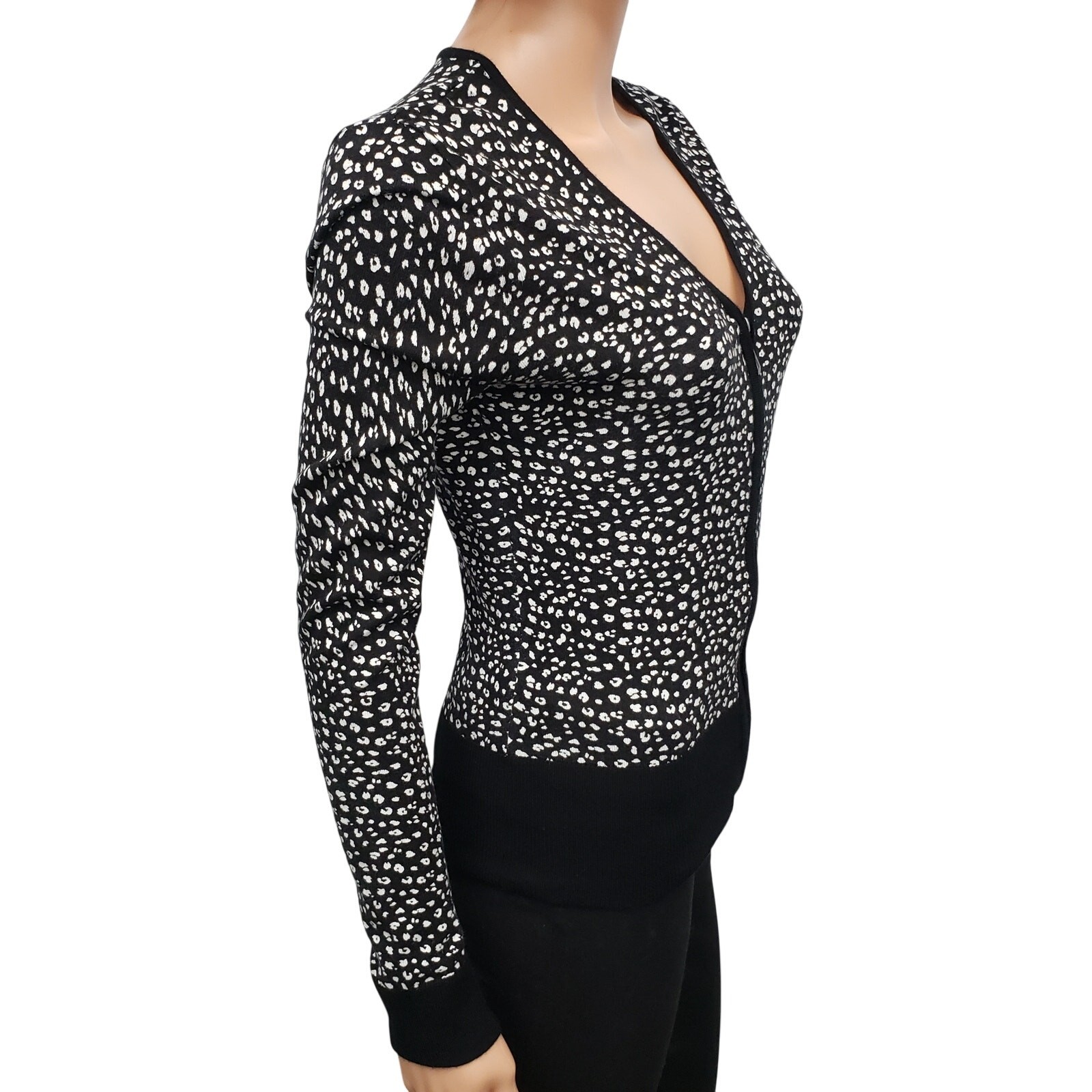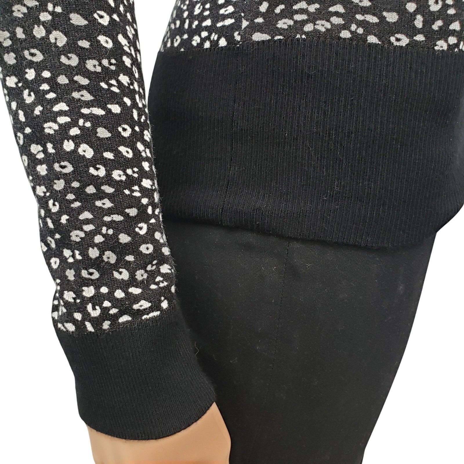 как выглядит White House Black Market WHBM Animal Print Zip up Cardigan Sweater S Black White фото