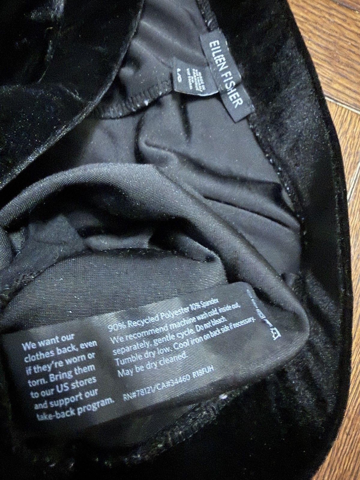 как выглядит Eileen Fisher Black Stretch Velvet Drawstring Pull-On Ankle Pant Women s Sz L фото