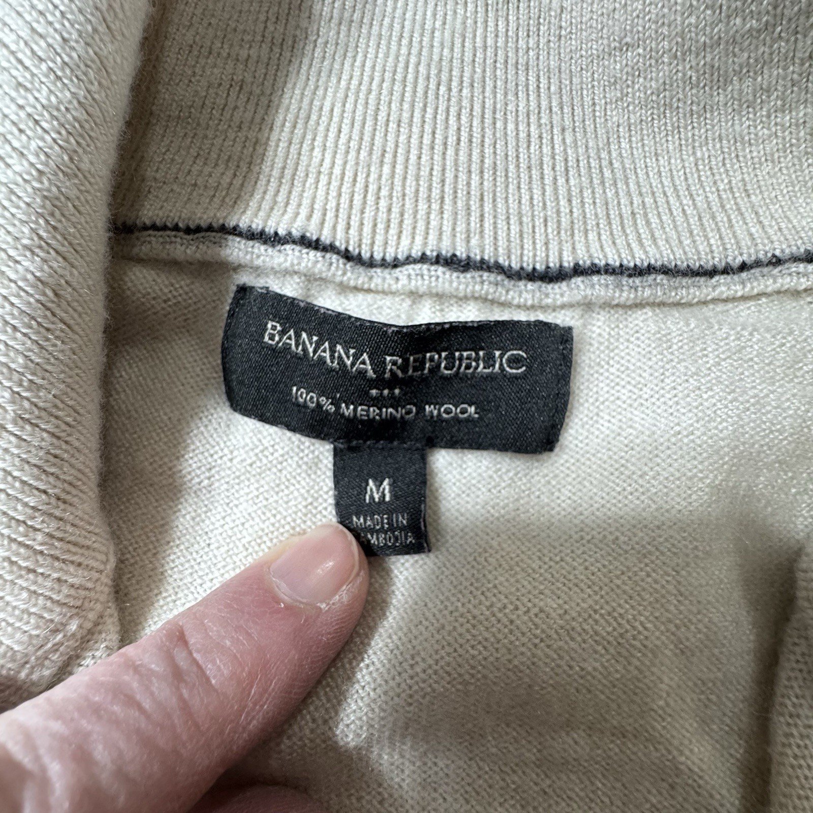 как выглядит Banana Republic Merino Wool Sweater/Quarter Zip Mens Pullover Beige M flaw фото
