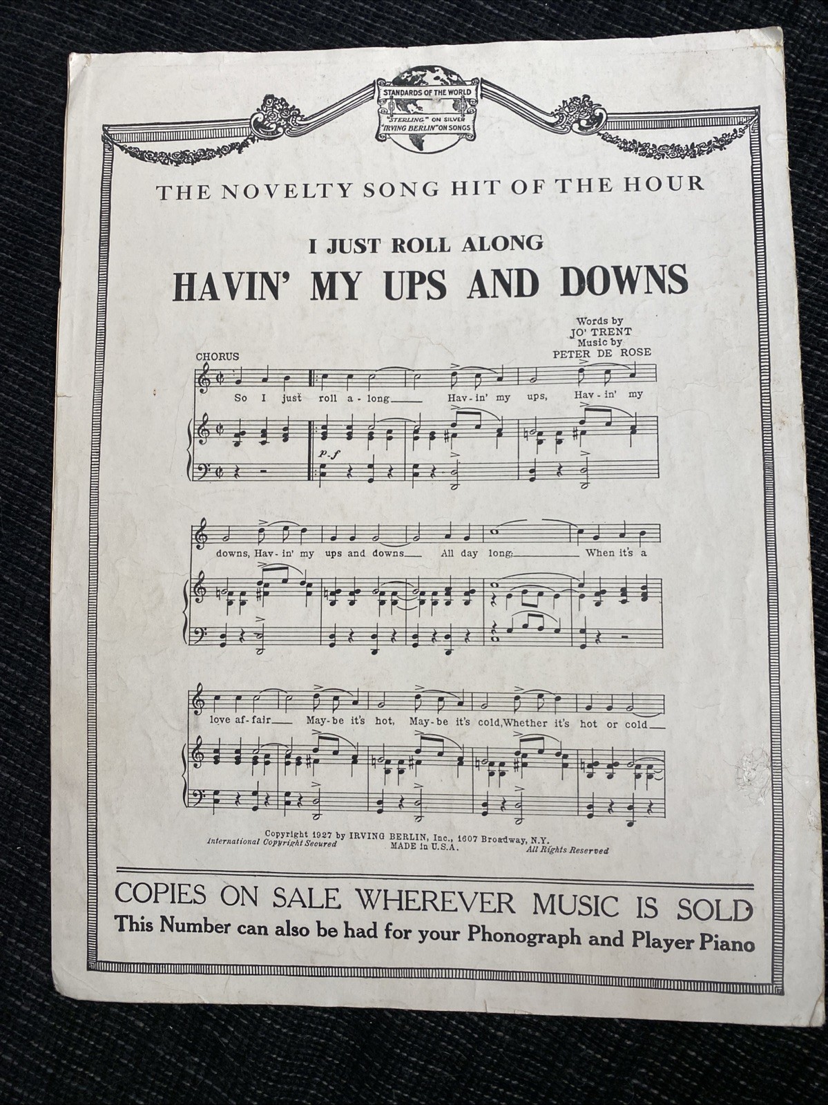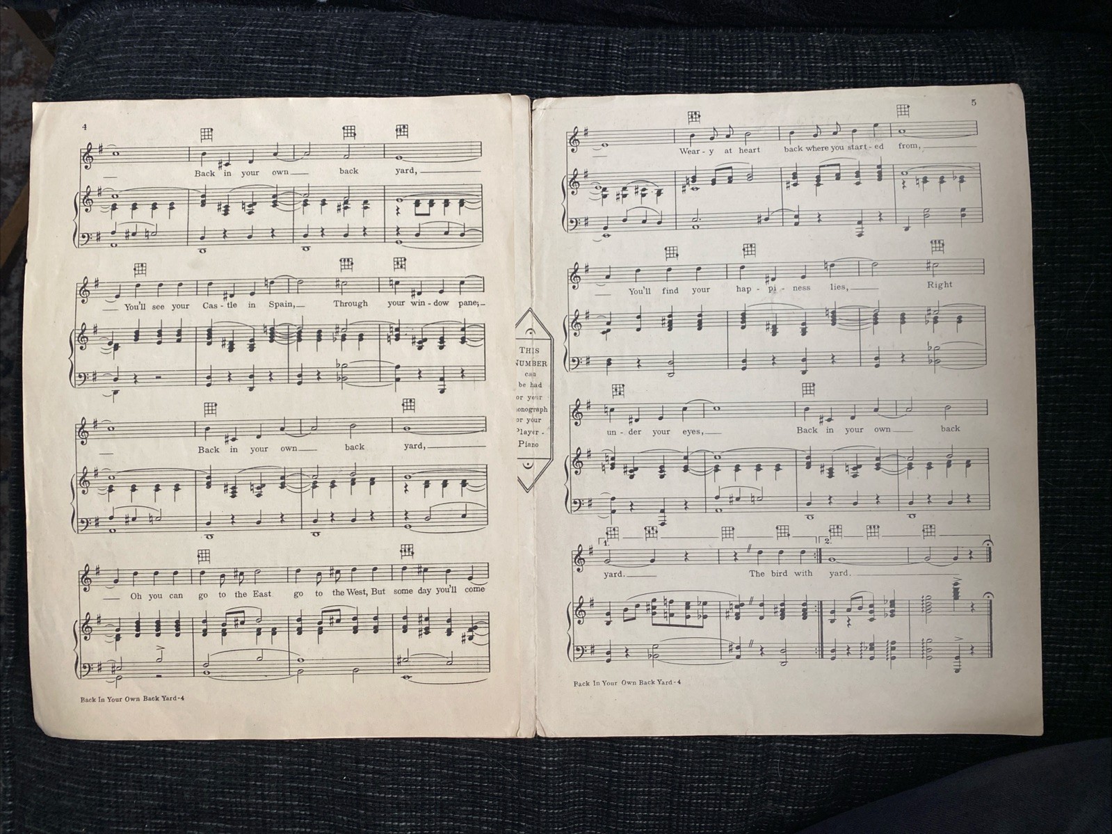 1928 Back In Your Own Back Yard Sheet Music Al Jolson - Billy Hays cover