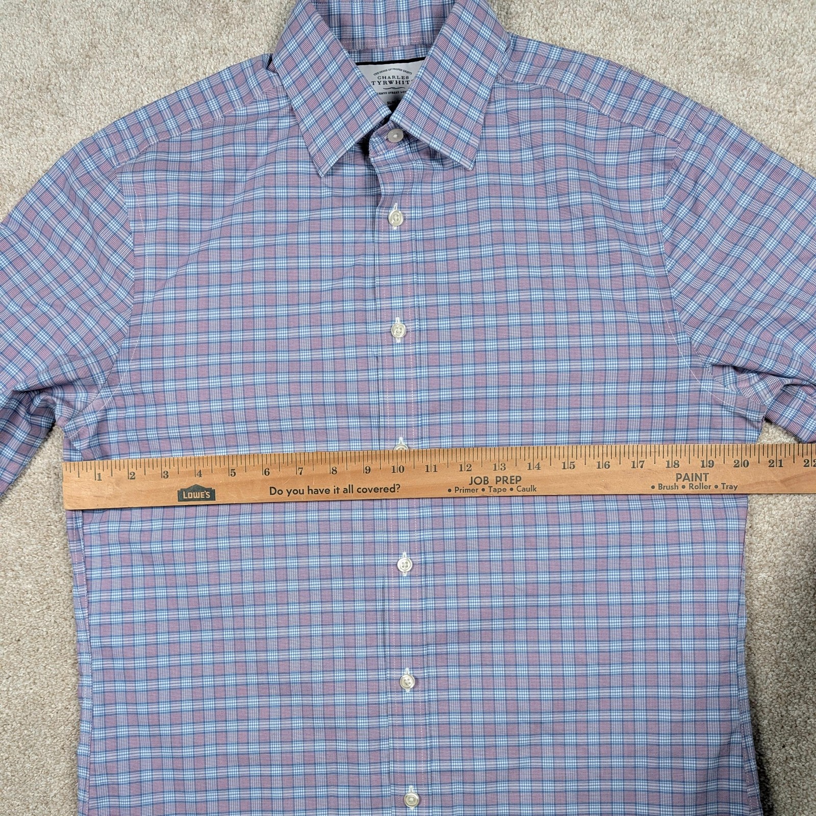 как выглядит Charles Tyrwhitt Shirt Mens 15.5 34/35 Blue Check Non Iron Slim Fit Cotton фото