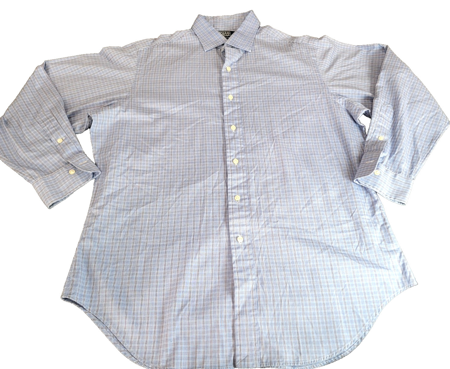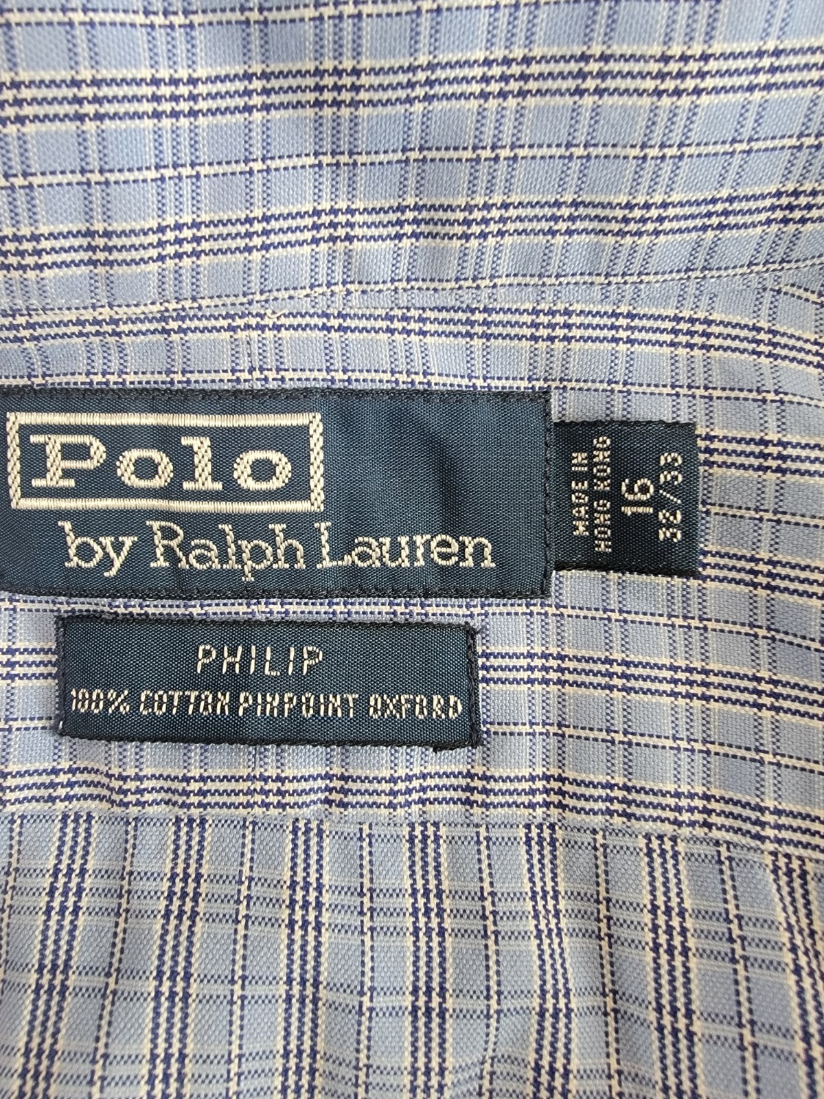 Vintage Polo Ralph Lauren Philip Oxford Shirt Mens Large Blue Plaid Button Front
