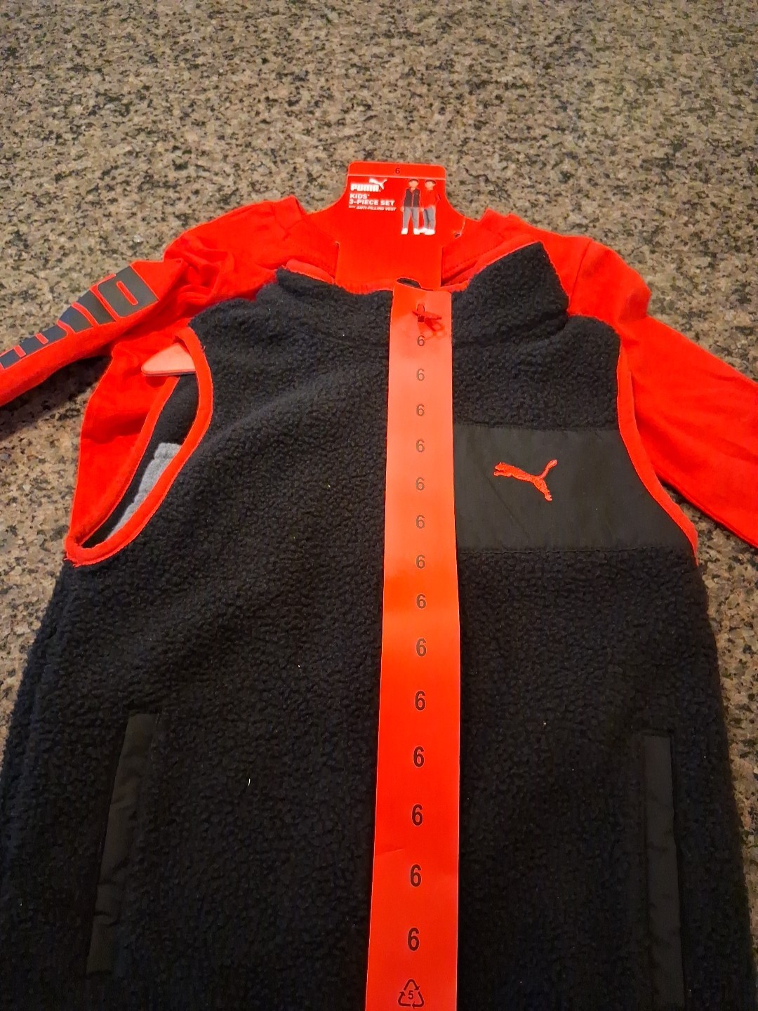 как выглядит Puma 3-Piece Kids Set Red, Black, Gray, Size Six With Vest фото